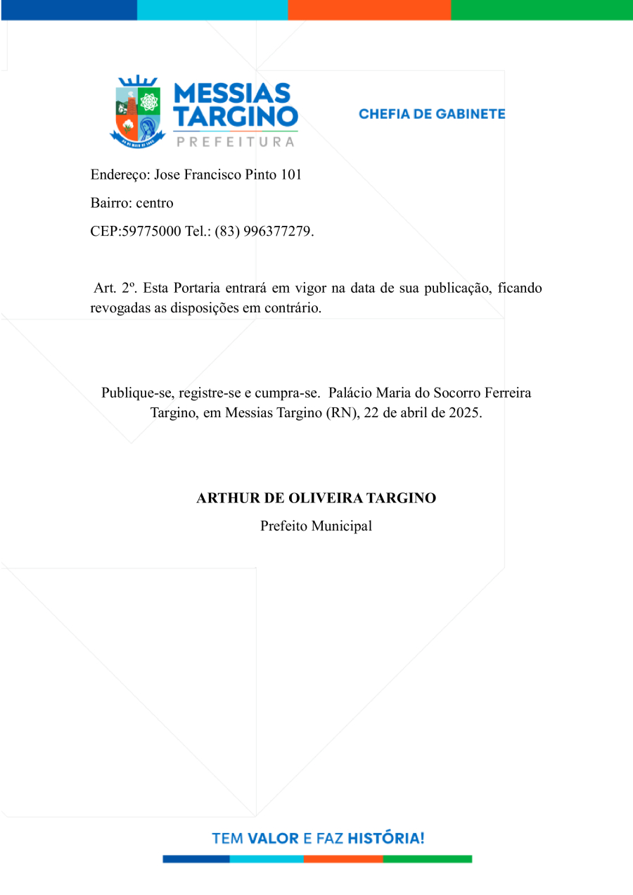 Conforme MP n° 2.200-2 de 24/08/2001, que institui a infraestrutura de chaves Públicas. Matéria Publicada no Diário Oficial do Município de Messias Targino/RN no dia - Edição 01272.