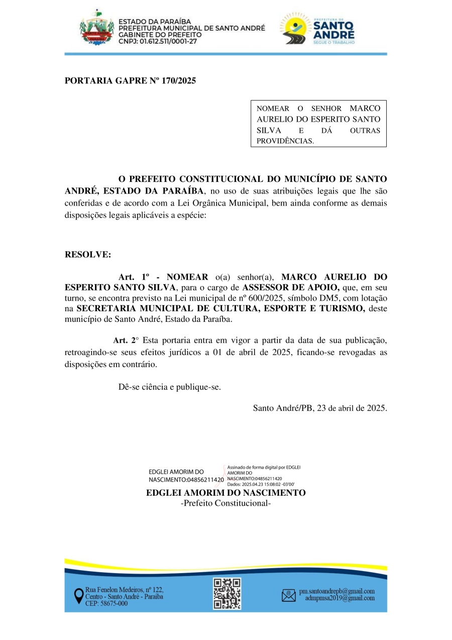 PORTARIA GAPRE Nº 170/2025 - NOMEAR O SENHOR MARCO AURELIO DO ESPERITO SANTO SILVA E DÁ OUTRAS PROVIDÊNCIAS.