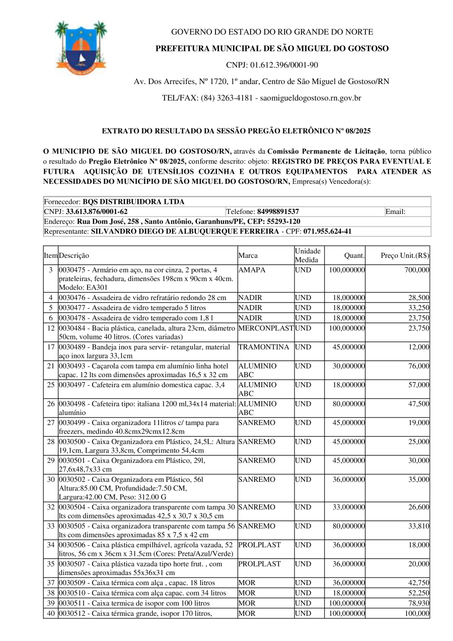 Conforme MP n° 2.200-2 de 24/08/2001, que institui a infraestrutura de chaves Públicas. Matéria Publicada no Diário Oficial do Município de São Miguel do Gostoso/RN no dia - Edição 01066.
