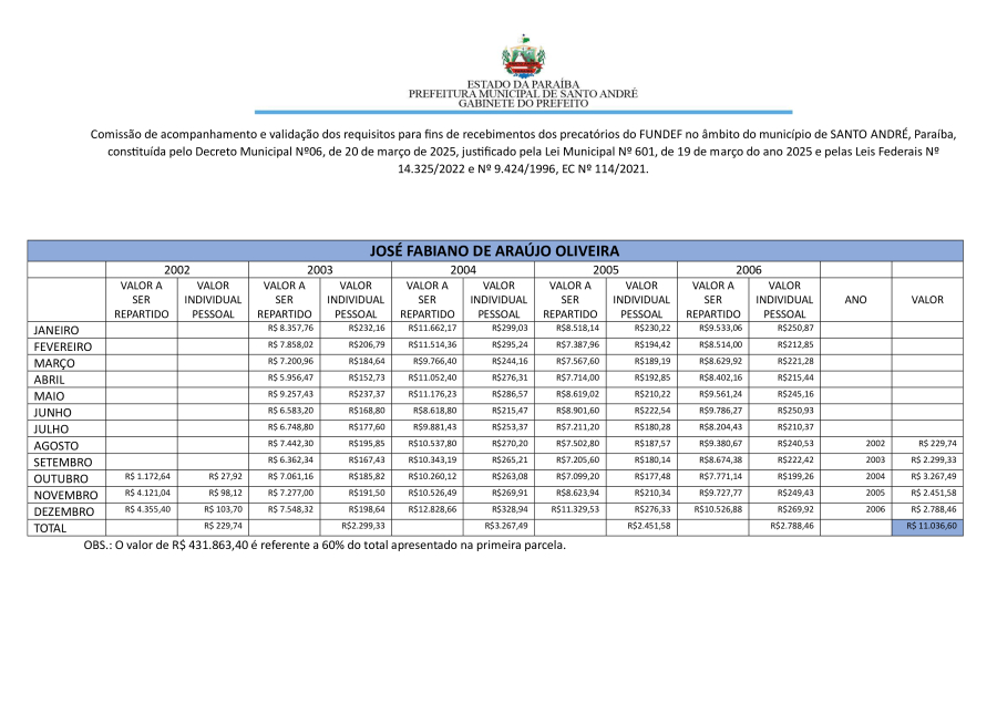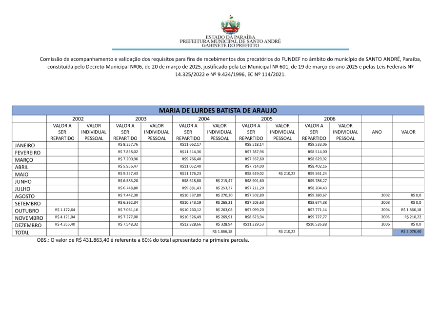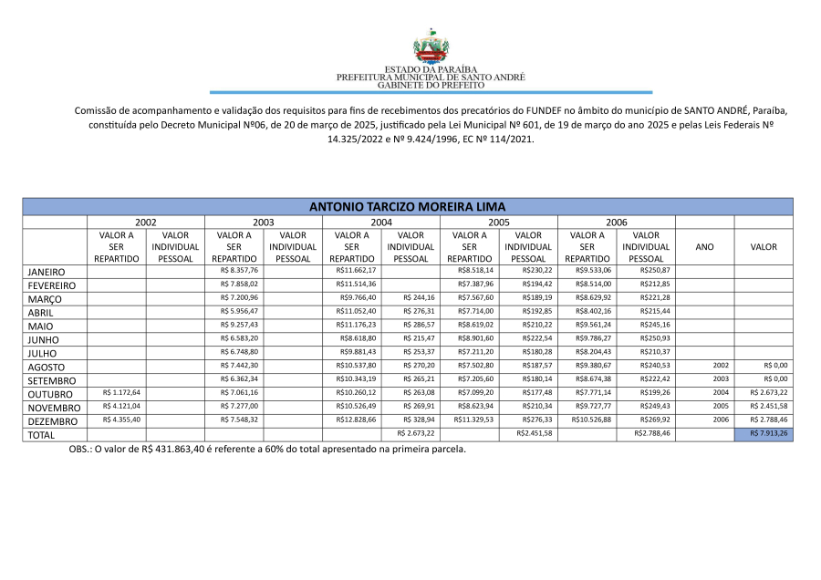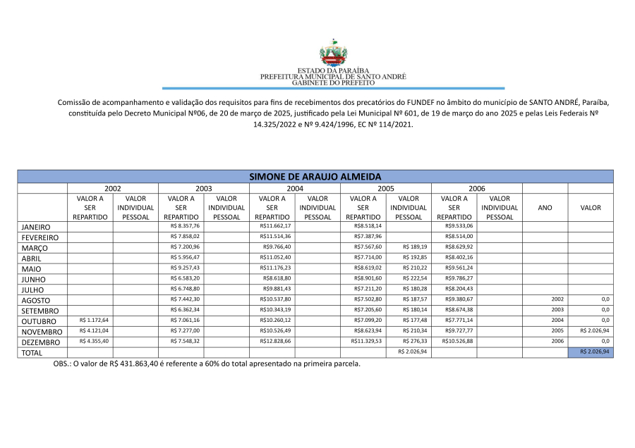 Conforme MP n° 2.200-2 de 24/08/2001, que institui a infraestrutura de chaves Públicas. Matéria Publicada no Diário Oficial do Município de Santo André/PB no dia - Edição 01203.