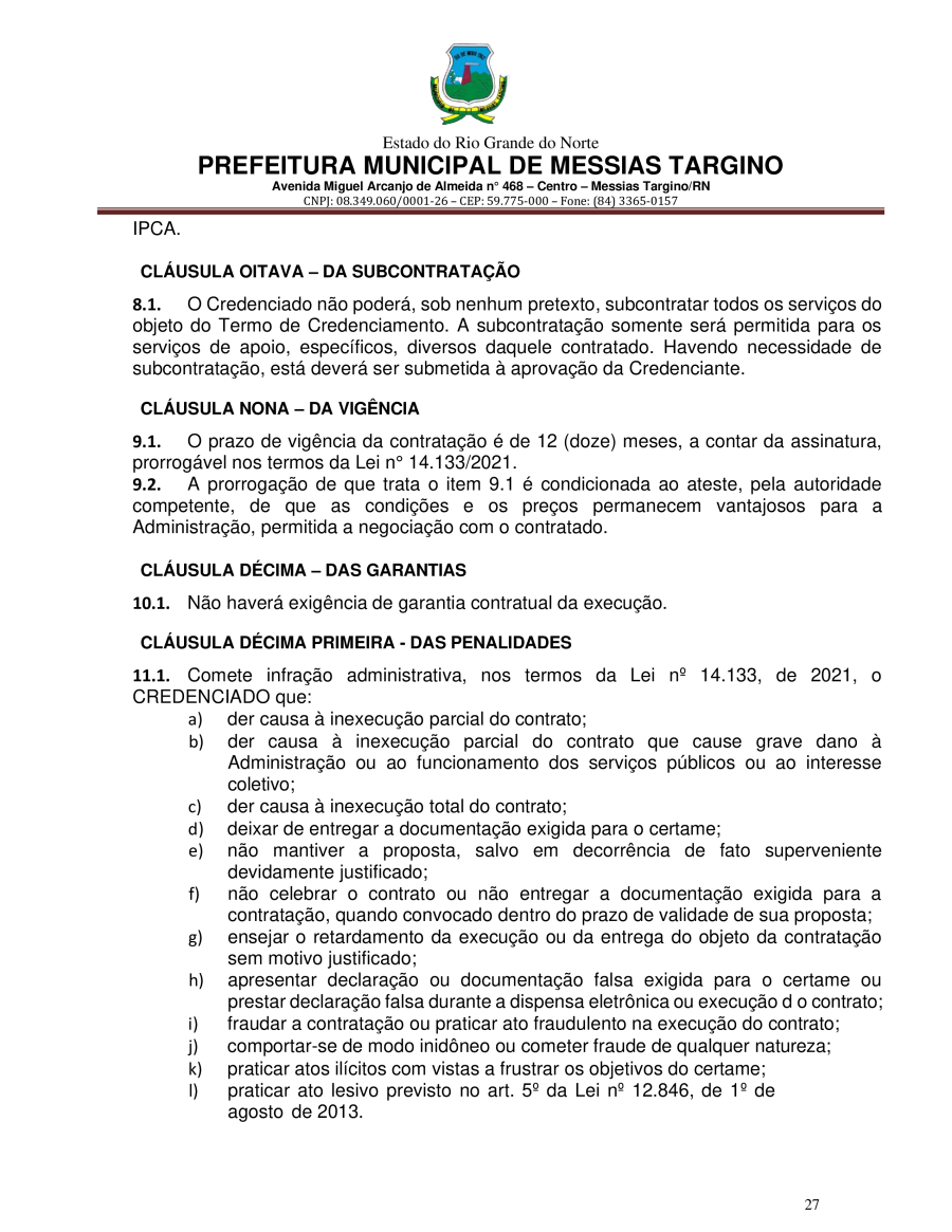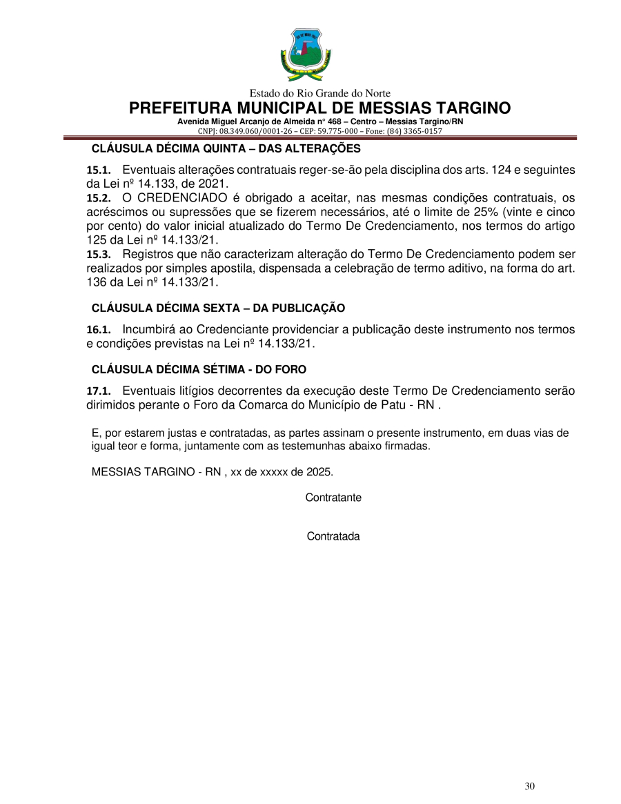 Conforme MP n° 2.200-2 de 24/08/2001, que institui a infraestrutura de chaves Públicas. Matéria Publicada no Diário Oficial do Município de Messias Targino/RN no dia - Edição .