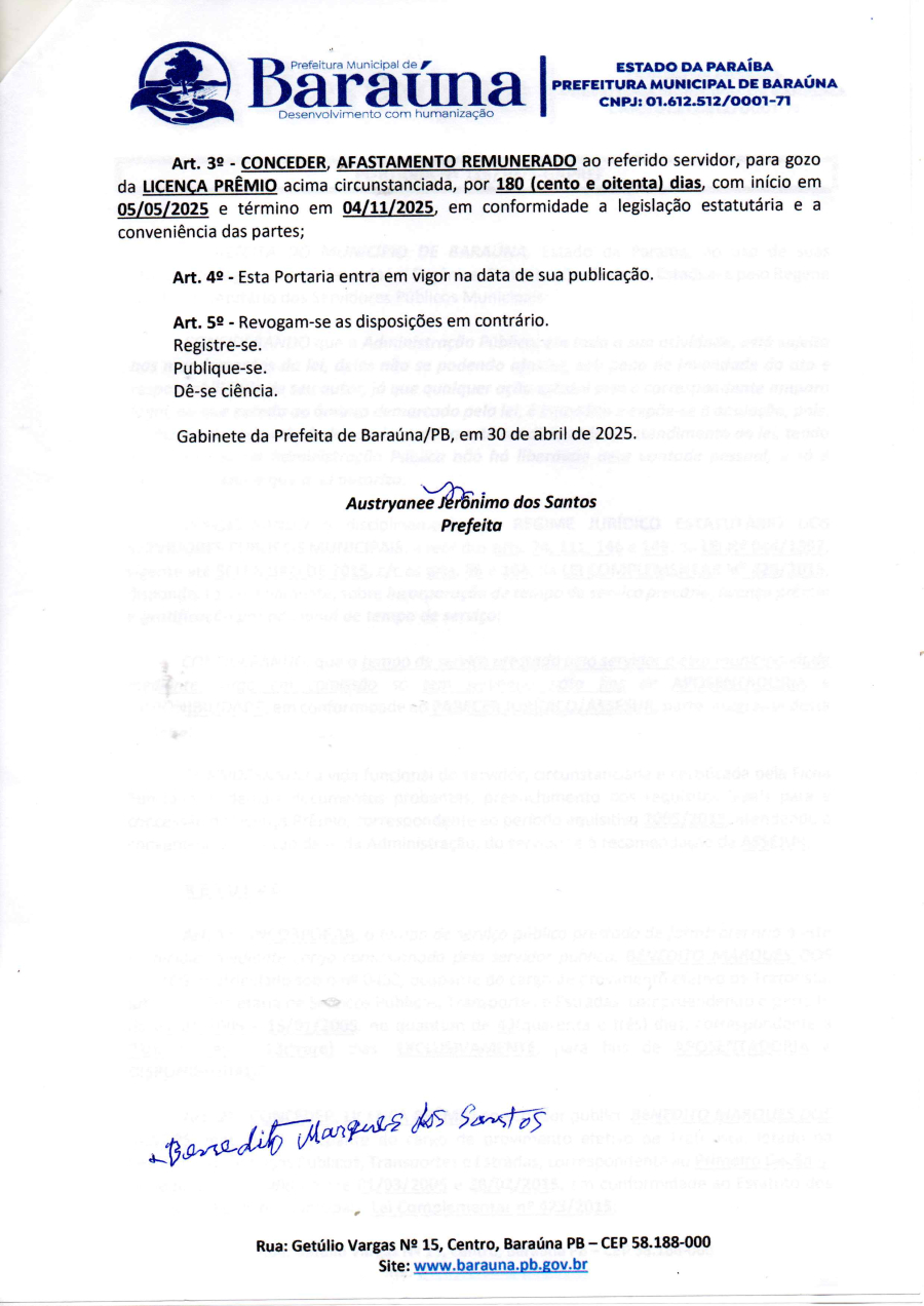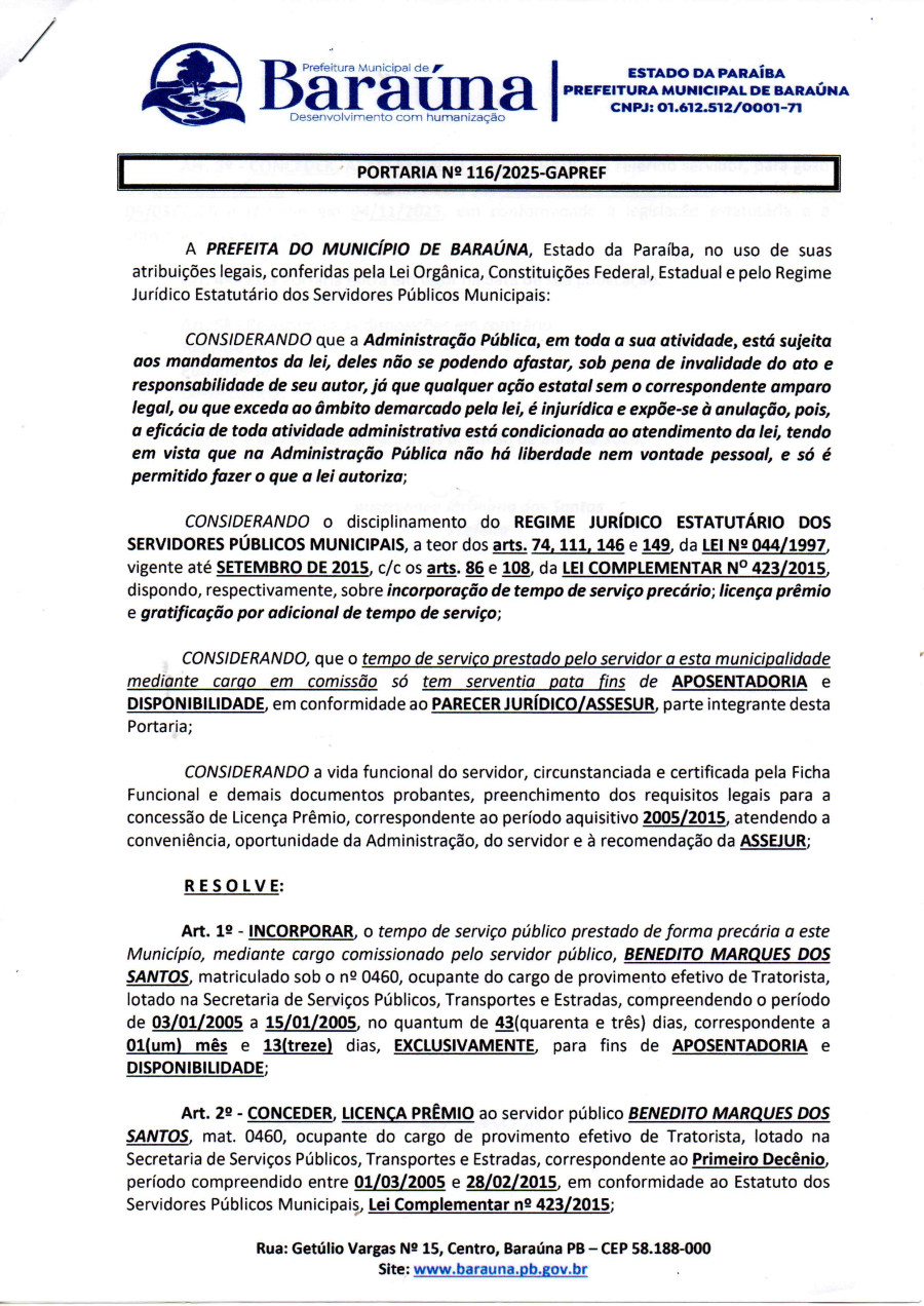 PORTARIA Nº 116/2025-GAPREF - CONCEDER LICENÇA PREMIO AO SERVIDOR PÚBLICO BENEDITO MARQUES DOS SANTOS. - 06 DE MAIO DE 2025.