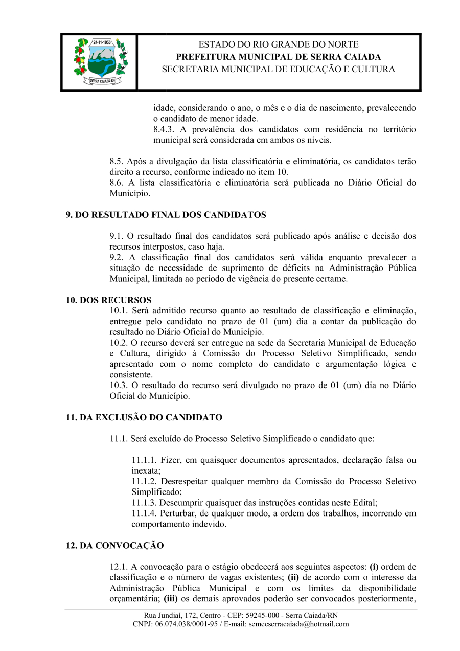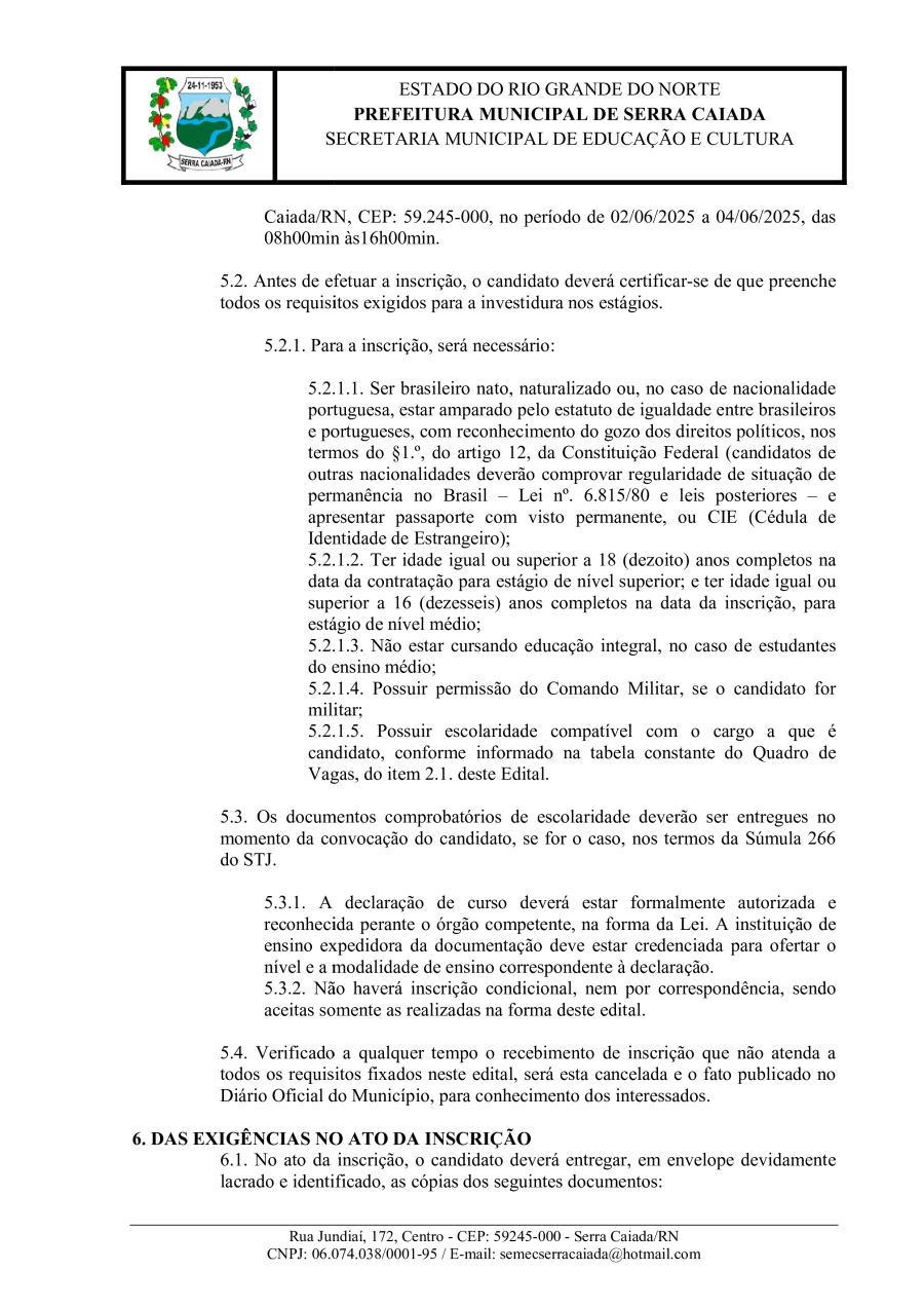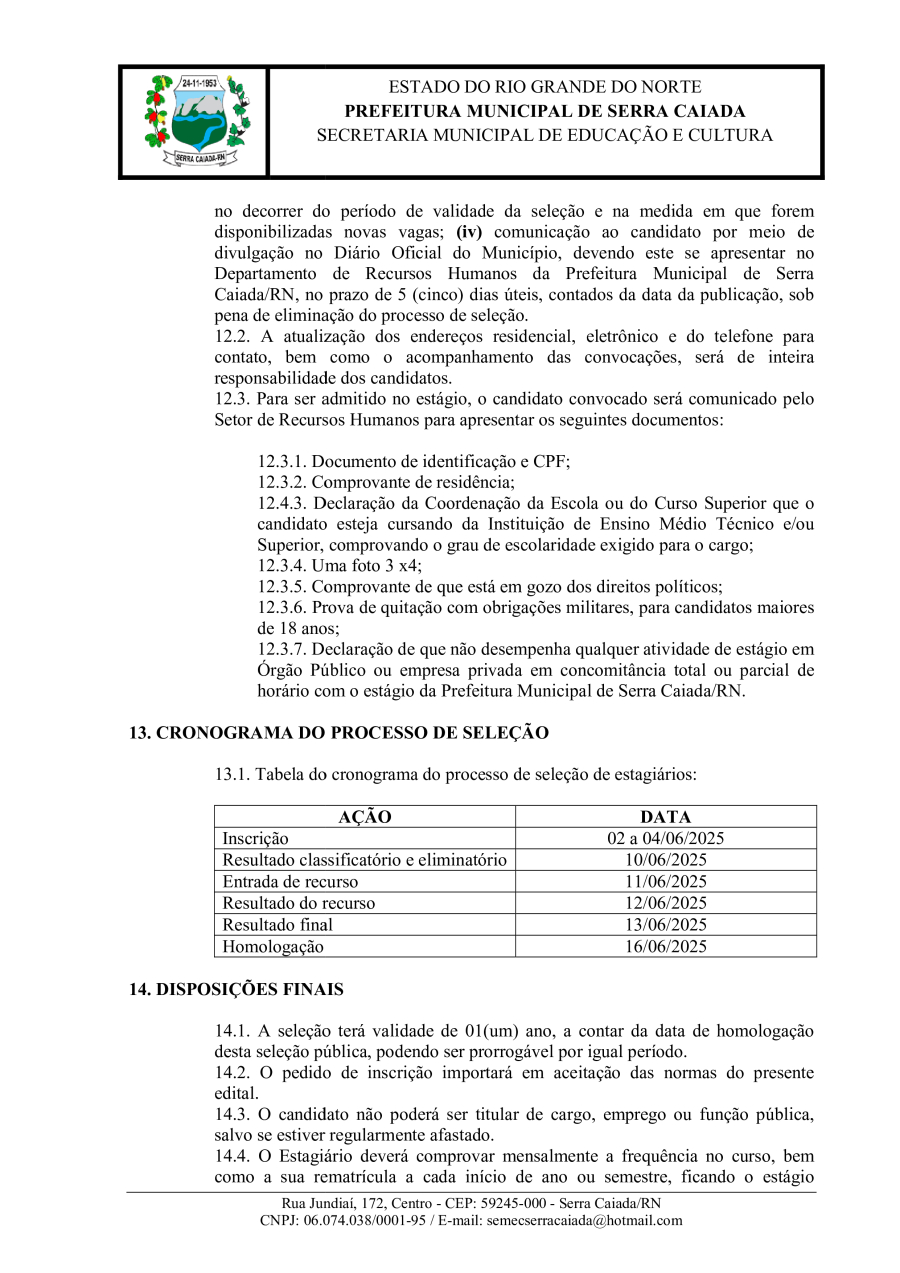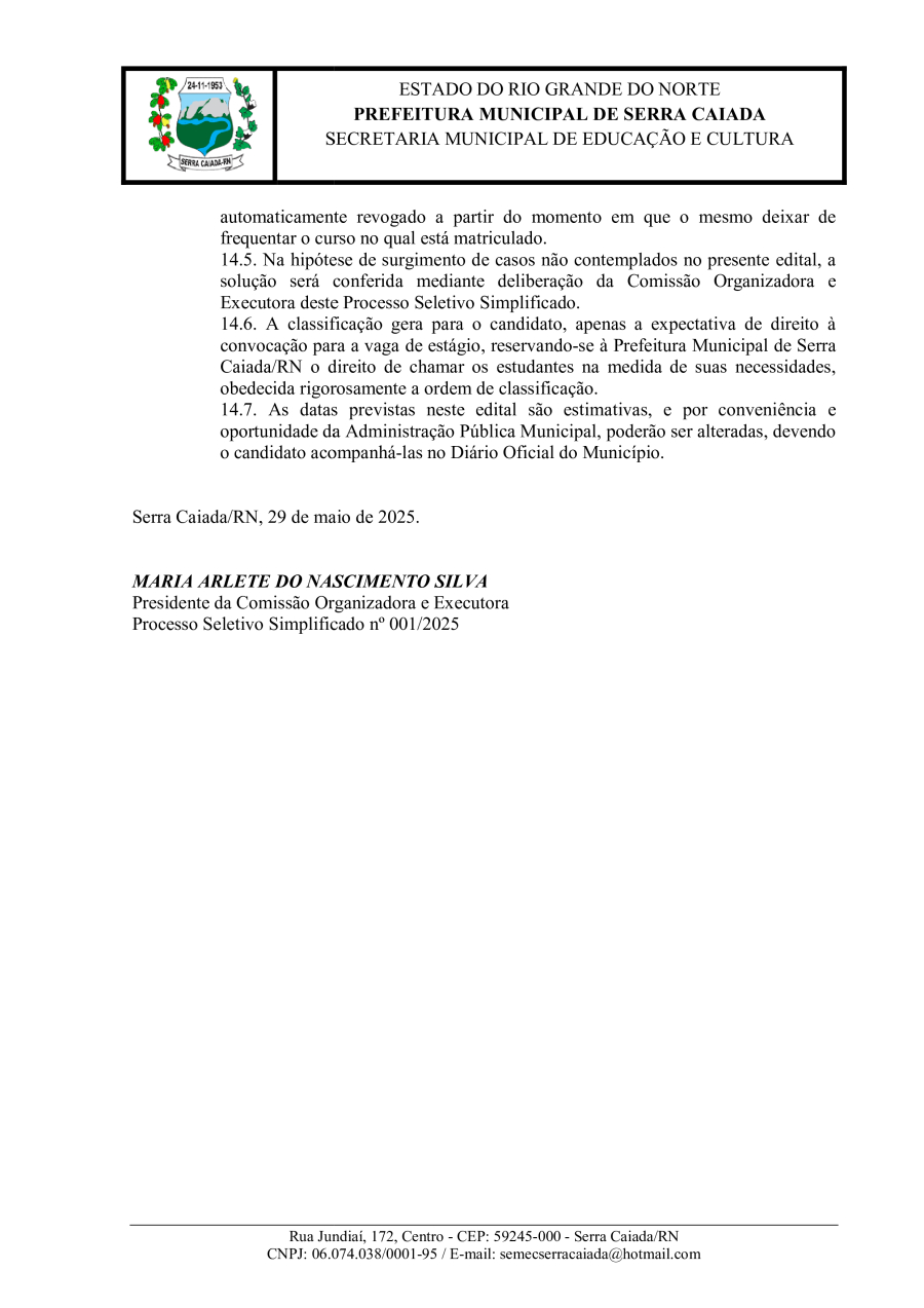 Conforme MP n° 2.200-2 de 24/08/2001, que institui a infraestrutura de chaves Públicas. Matéria Publicada no Diário Oficial do Município de Serra Caiada/RN no dia - Edição 00509.