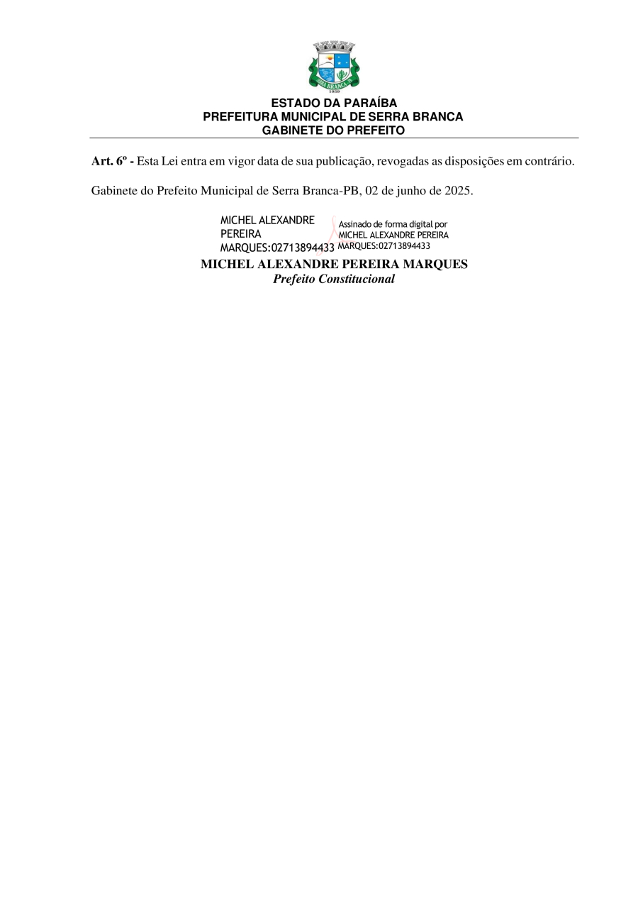 Conforme MP n° 2.200-2 de 24/08/2001, que institui a infraestrutura de chaves Públicas. Matéria Publicada no Diário Oficial do Município de Serra Branca/PB no dia - Edição 00103.