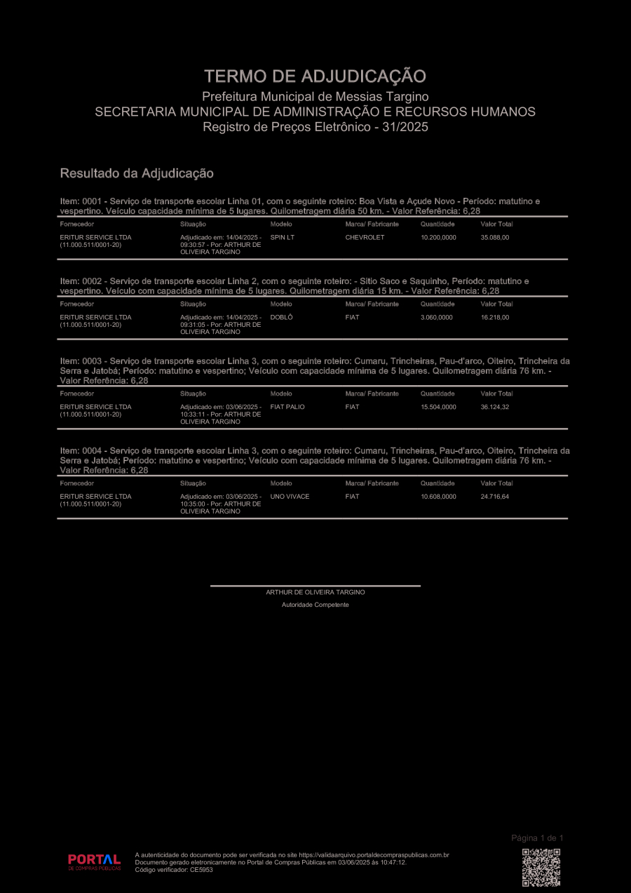 TERMO DE ADJUDICAÇÃO PRoC Nº 31/2025 - PE 02/2025