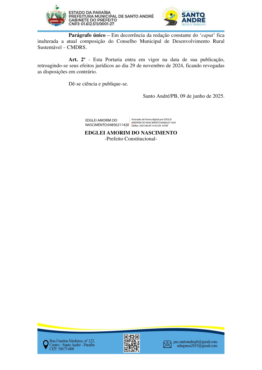 Conforme MP n° 2.200-2 de 24/08/2001, que institui a infraestrutura de chaves Públicas. Matéria Publicada no Diário Oficial do Município de Santo André/PB no dia - Edição 01231.