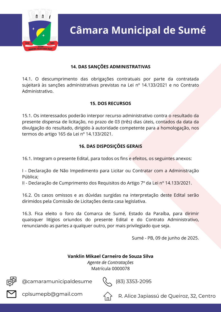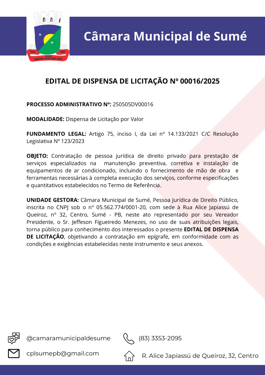 EDITAL DE DISPENSA DV 00016/2025