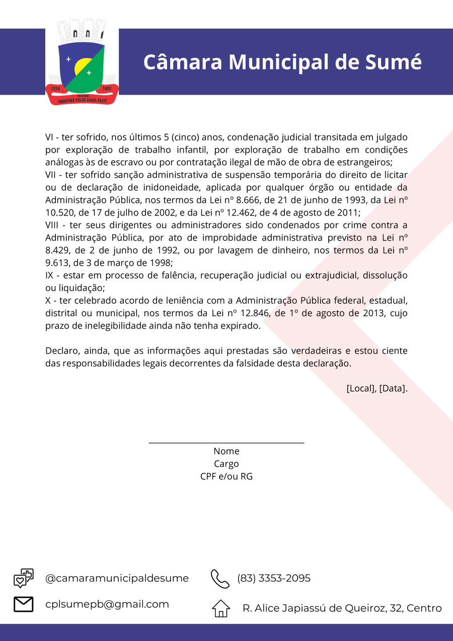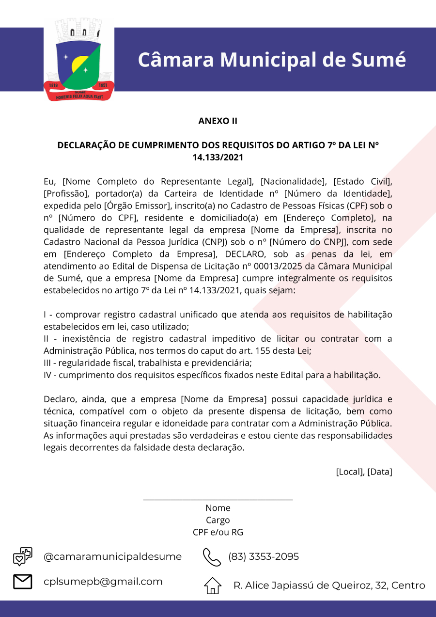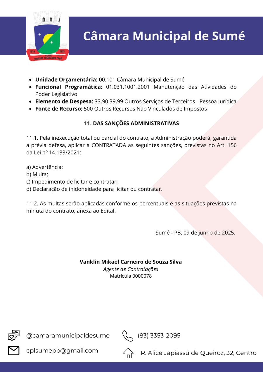 Conforme MP n° 2.200-2 de 24/08/2001, que institui a infraestrutura de chaves Públicas. Matéria Publicada no Diário Oficial do Município de Sumé/PB no dia - Edição 00097.
