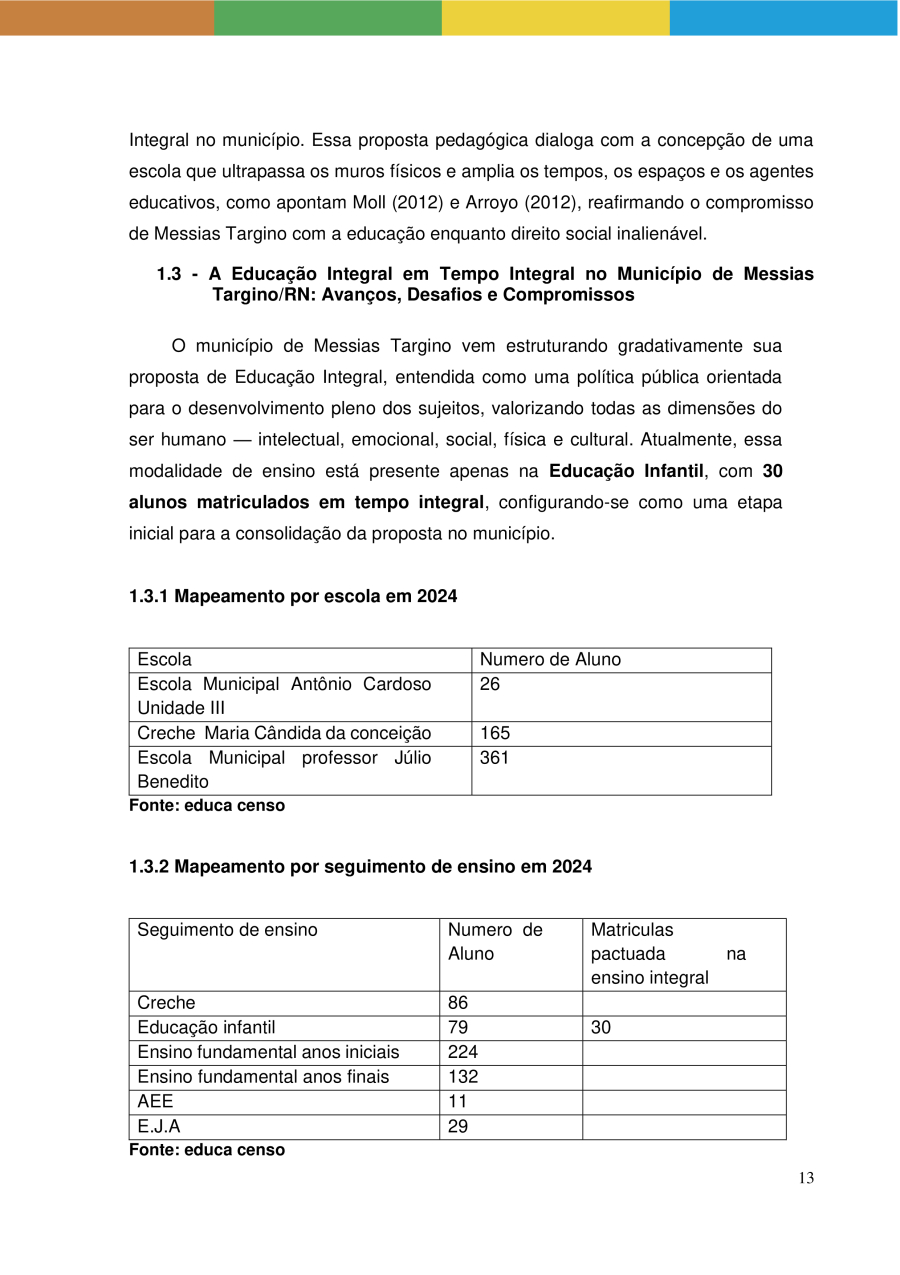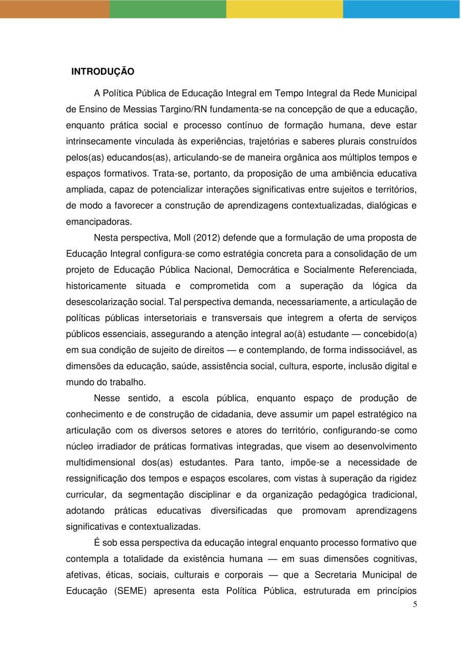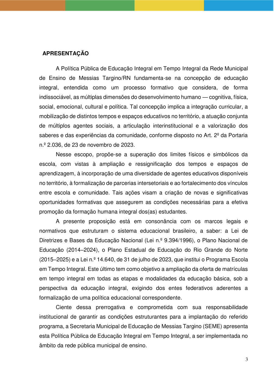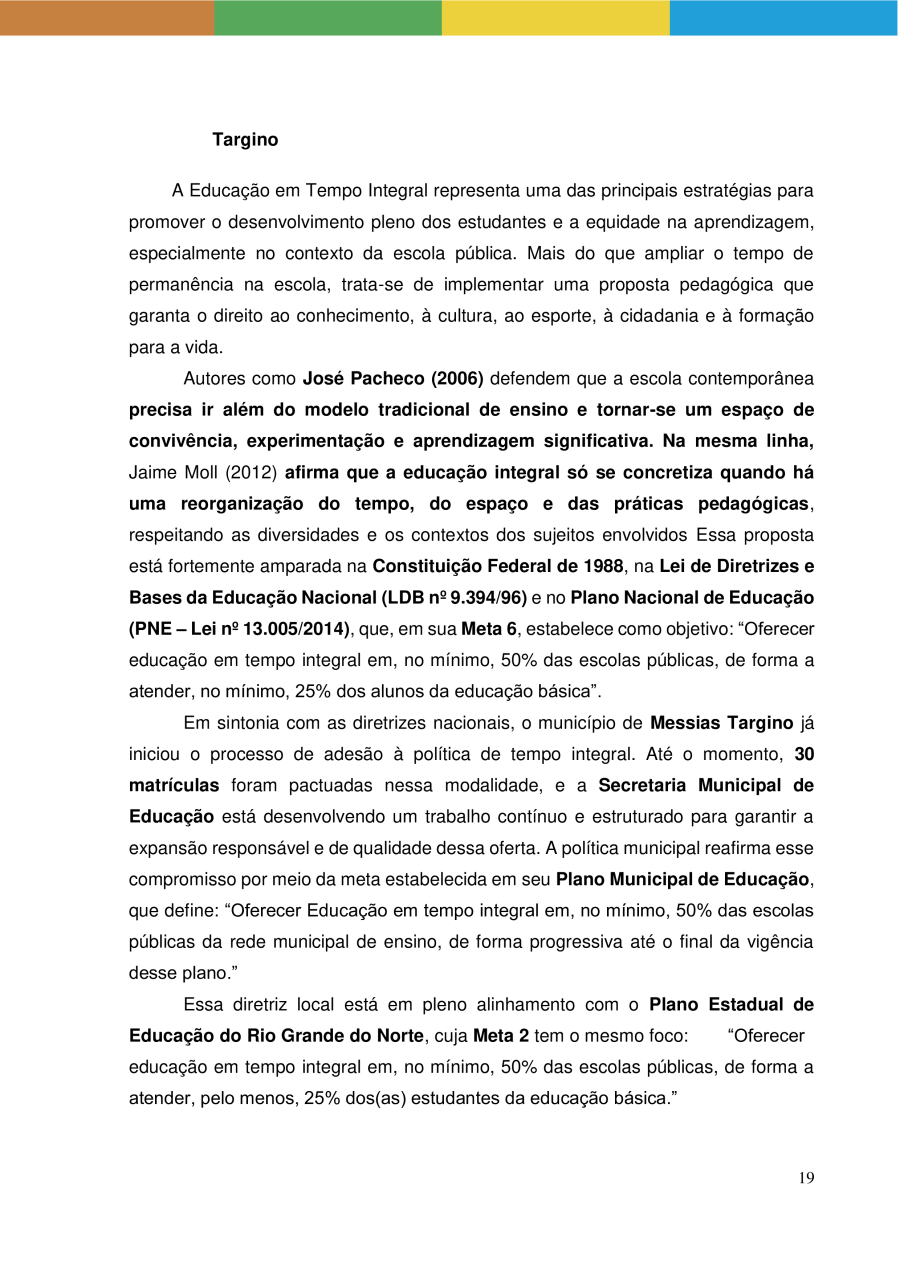 POLÍTICA PÚBLICA DE EDUCAÇÃO INTEGRAL EM TEMPO INTEGRAL DA REDE MUNICIPAL DE ENSINO DE MESSIAS TARGINO/RN
