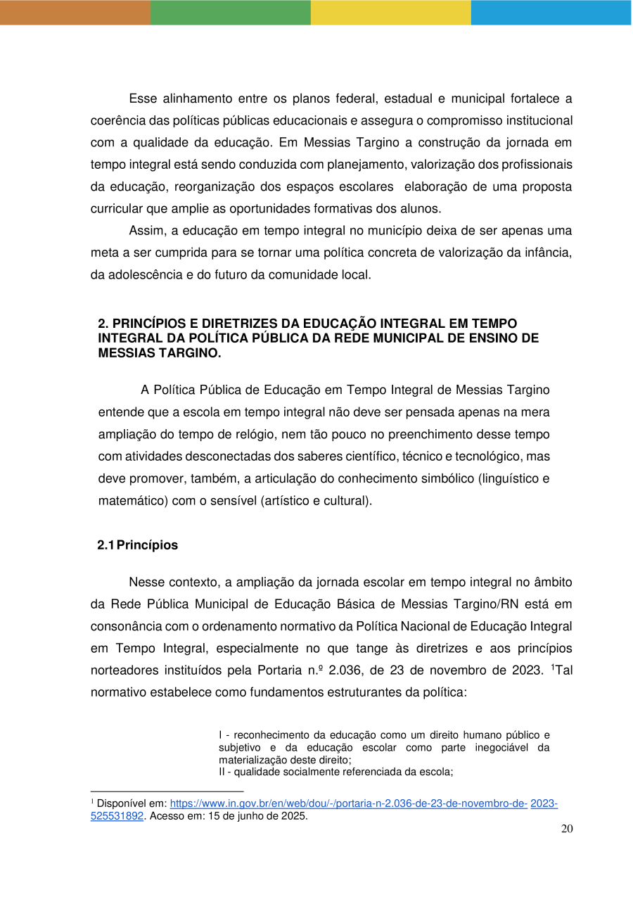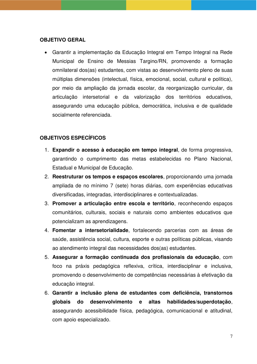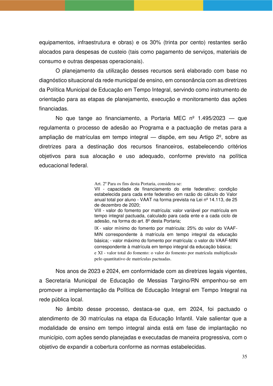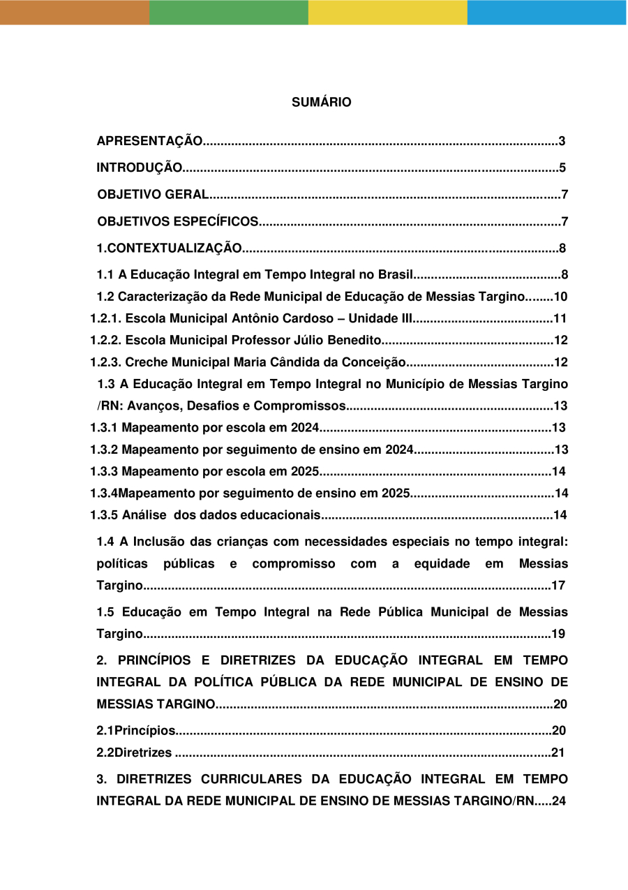 POLÍTICA PÚBLICA DE EDUCAÇÃO INTEGRAL EM TEMPO INTEGRAL DA REDE MUNICIPAL DE ENSINO DE MESSIAS TARGINO/RN