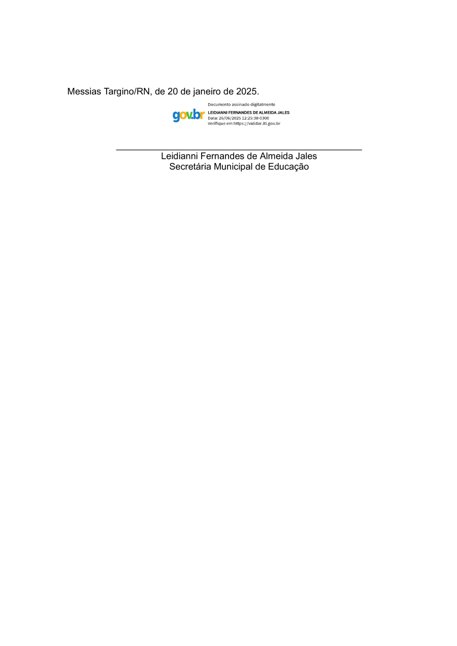 Conforme MP n° 2.200-2 de 24/08/2001, que institui a infraestrutura de chaves Públicas. Matéria Publicada no Diário Oficial do Município de Messias Targino/RN no dia - Edição 01318.