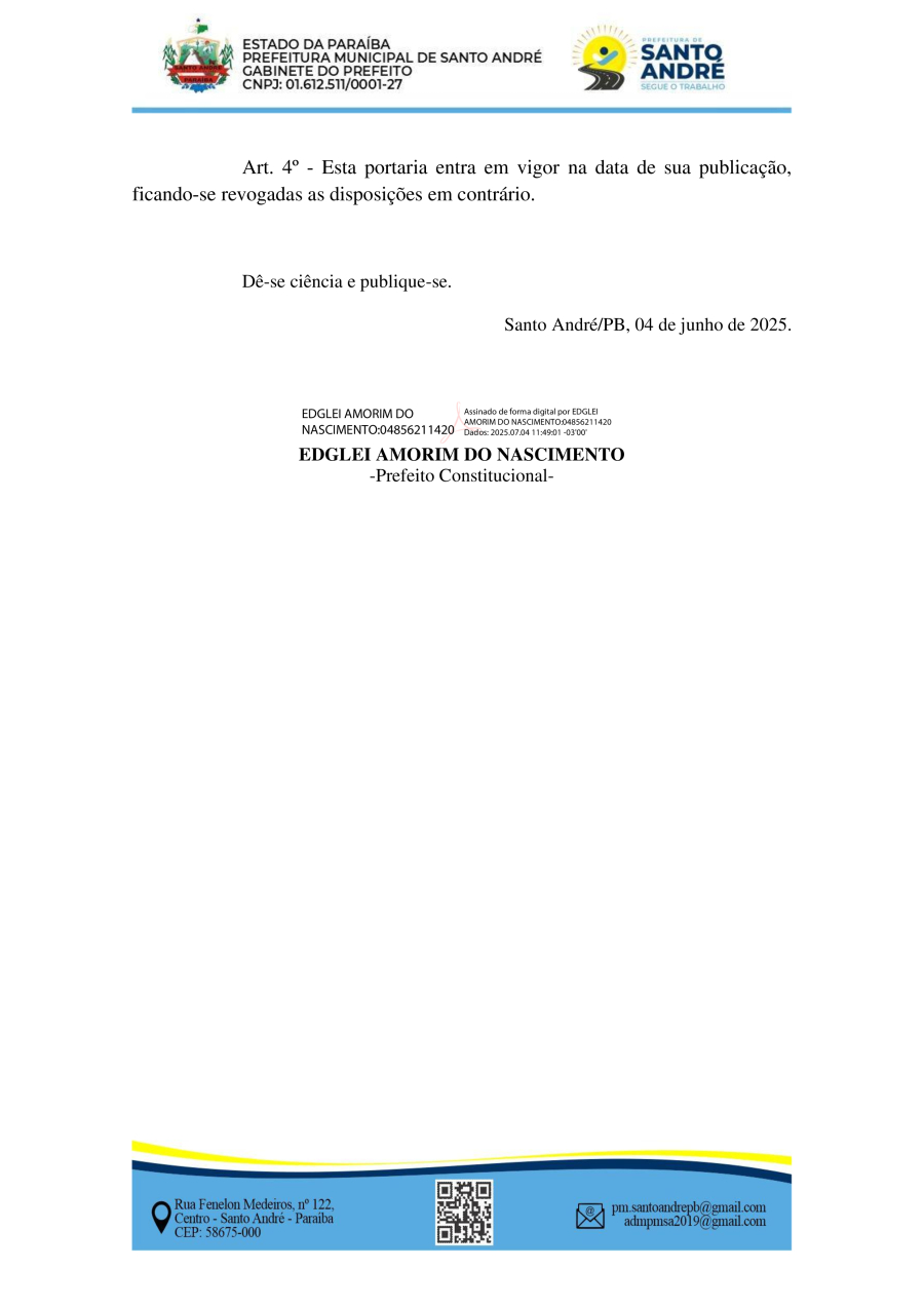 Conforme MP n° 2.200-2 de 24/08/2001, que institui a infraestrutura de chaves Públicas. Matéria Publicada no Diário Oficial do Município de Santo André/PB no dia - Edição 01249.