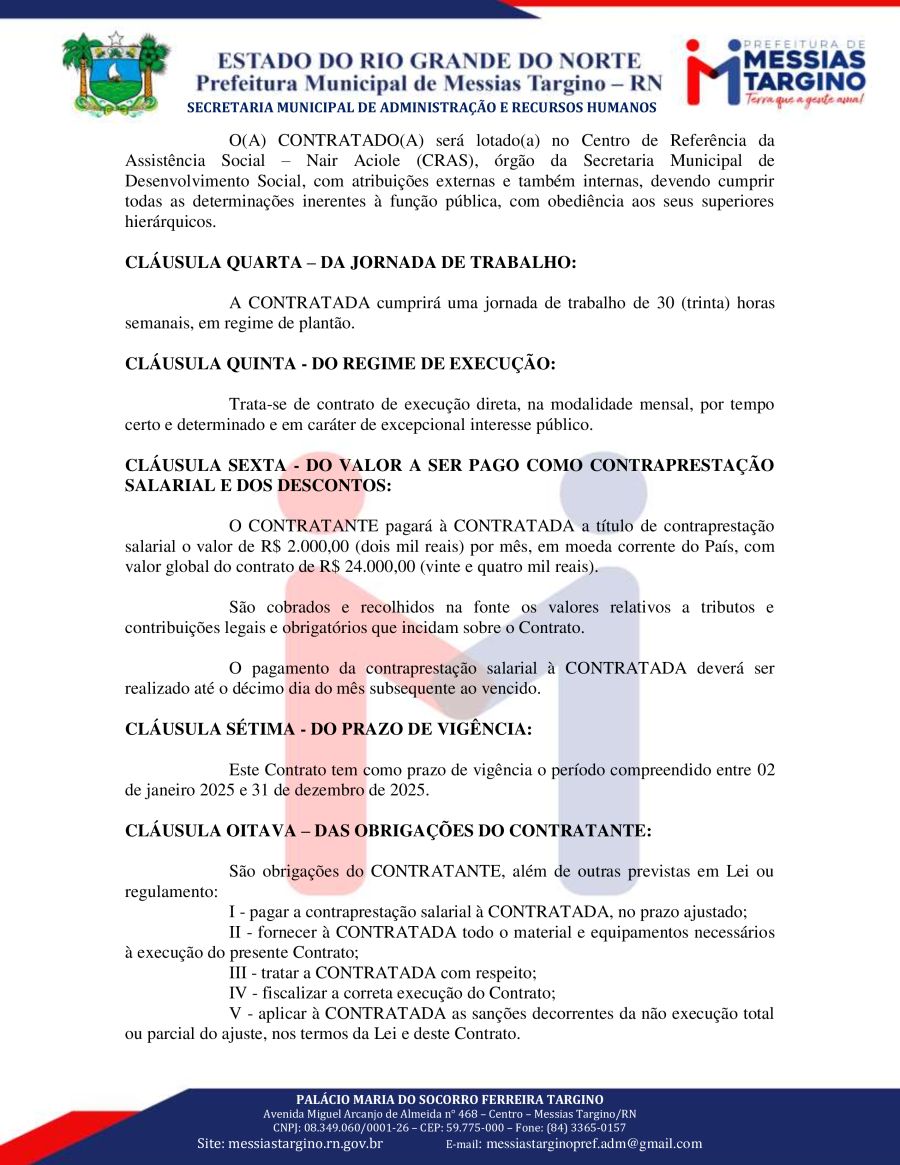 Conforme MP n° 2.200-2 de 24/08/2001, que institui a infraestrutura de chaves Públicas. Matéria Publicada no Diário Oficial do Município de Messias Targino/RN no dia - Edição 01325.