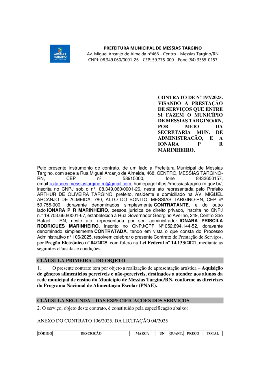 TERMO DE CONTRATO PE Nº 04/2025, CONTRATO Nº 197