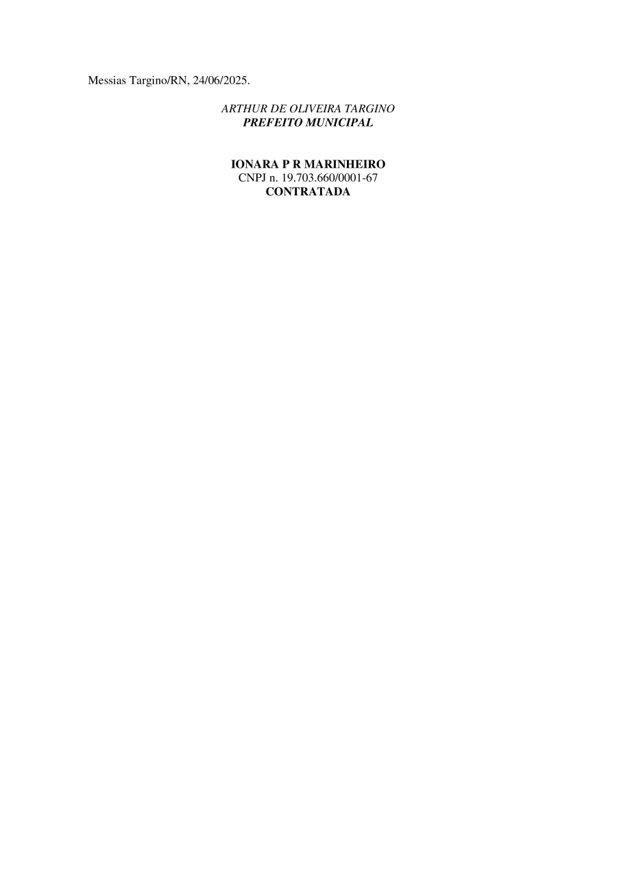 Conforme MP n° 2.200-2 de 24/08/2001, que institui a infraestrutura de chaves Públicas. Matéria Publicada no Diário Oficial do Município de Messias Targino/RN no dia - Edição 01325.