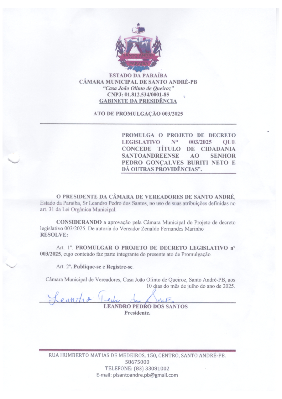 ATO DE PROMULGAÇÃO N° 0003/2025