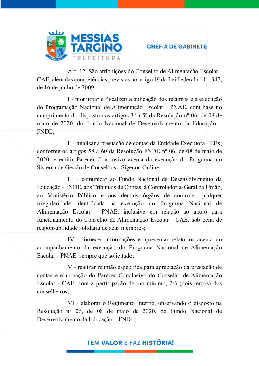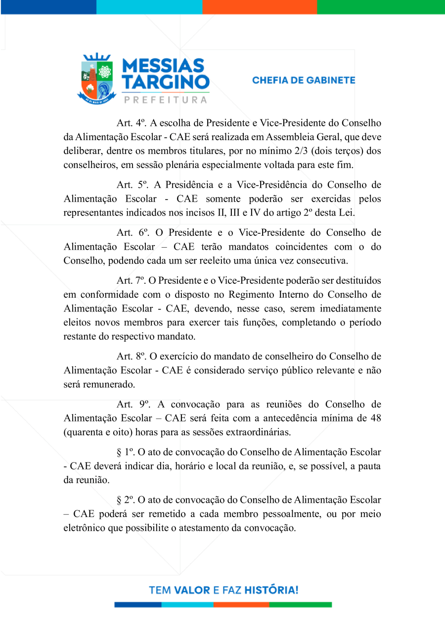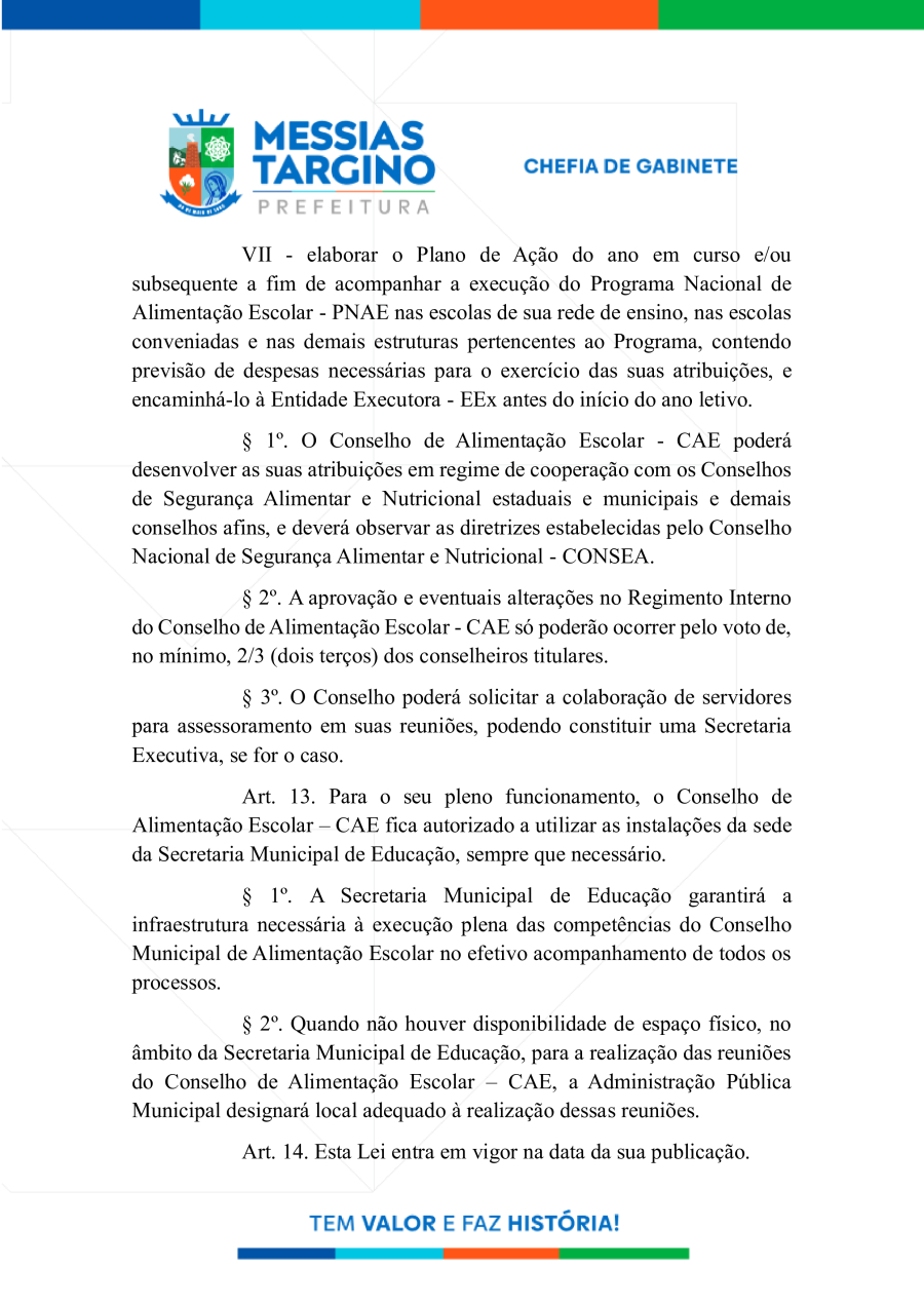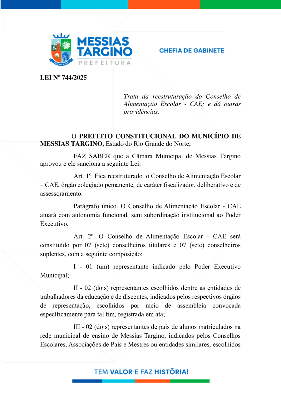 LEI N°744 - reestruturação do Conselho de Alimentação Escolar - CAE
