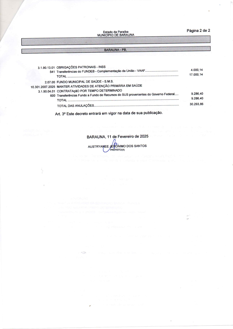 Conforme MP n° 2.200-2 de 24/08/2001, que institui a infraestrutura de chaves Públicas. Matéria Publicada no Diário Oficial do Município de Baraúna/PB no dia - Edição 01280.