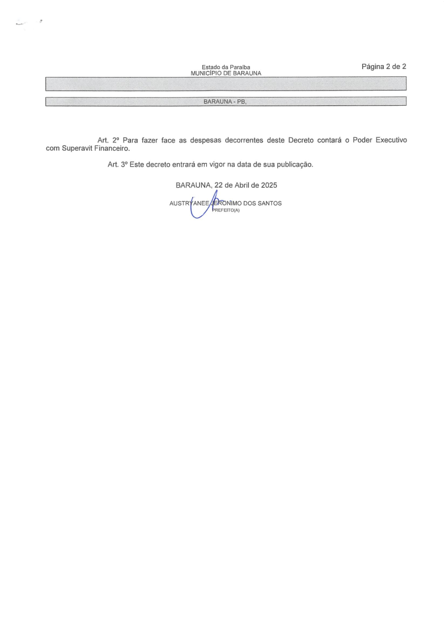 Conforme MP n° 2.200-2 de 24/08/2001, que institui a infraestrutura de chaves Públicas. Matéria Publicada no Diário Oficial do Município de Baraúna/PB no dia - Edição 01281.