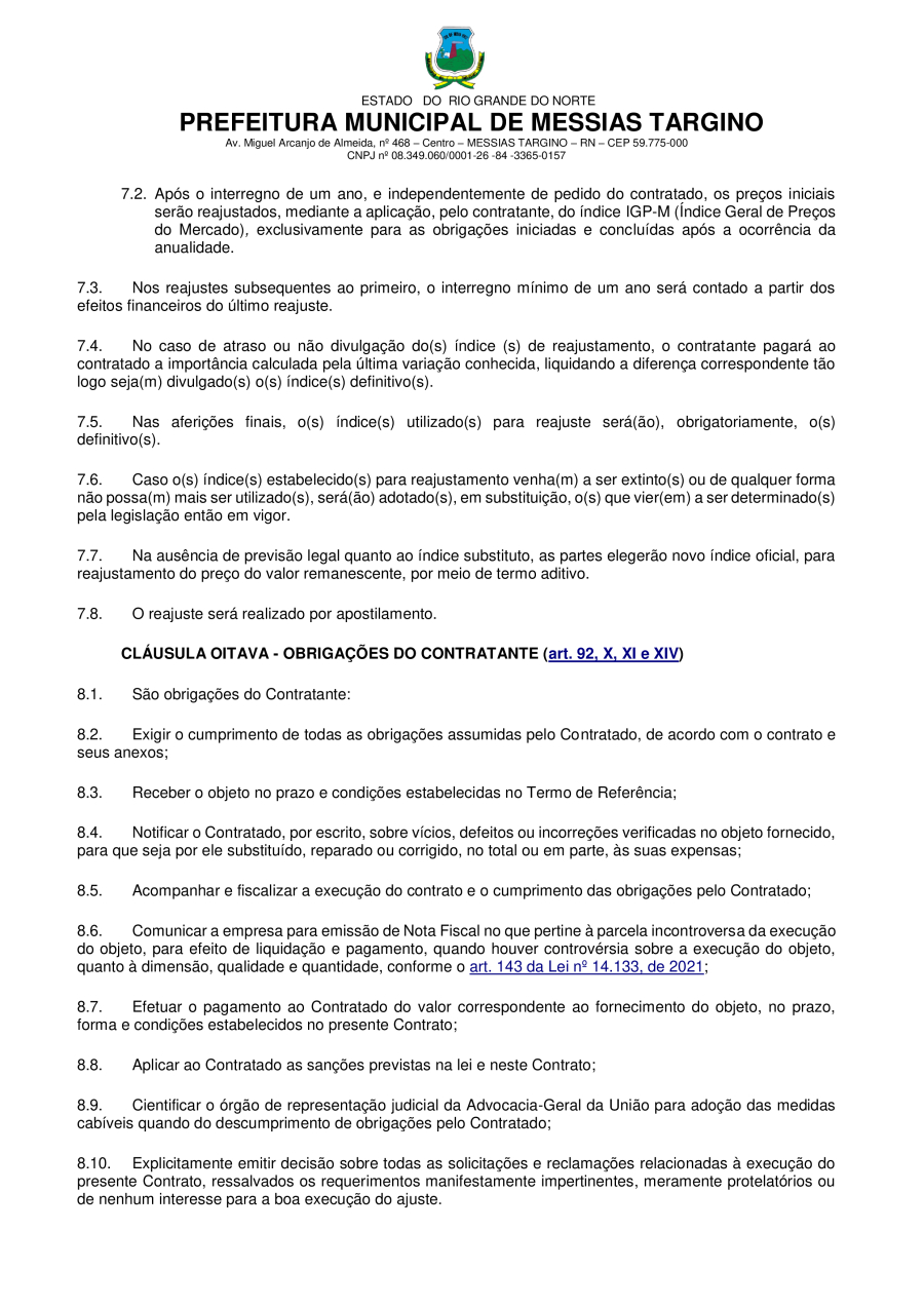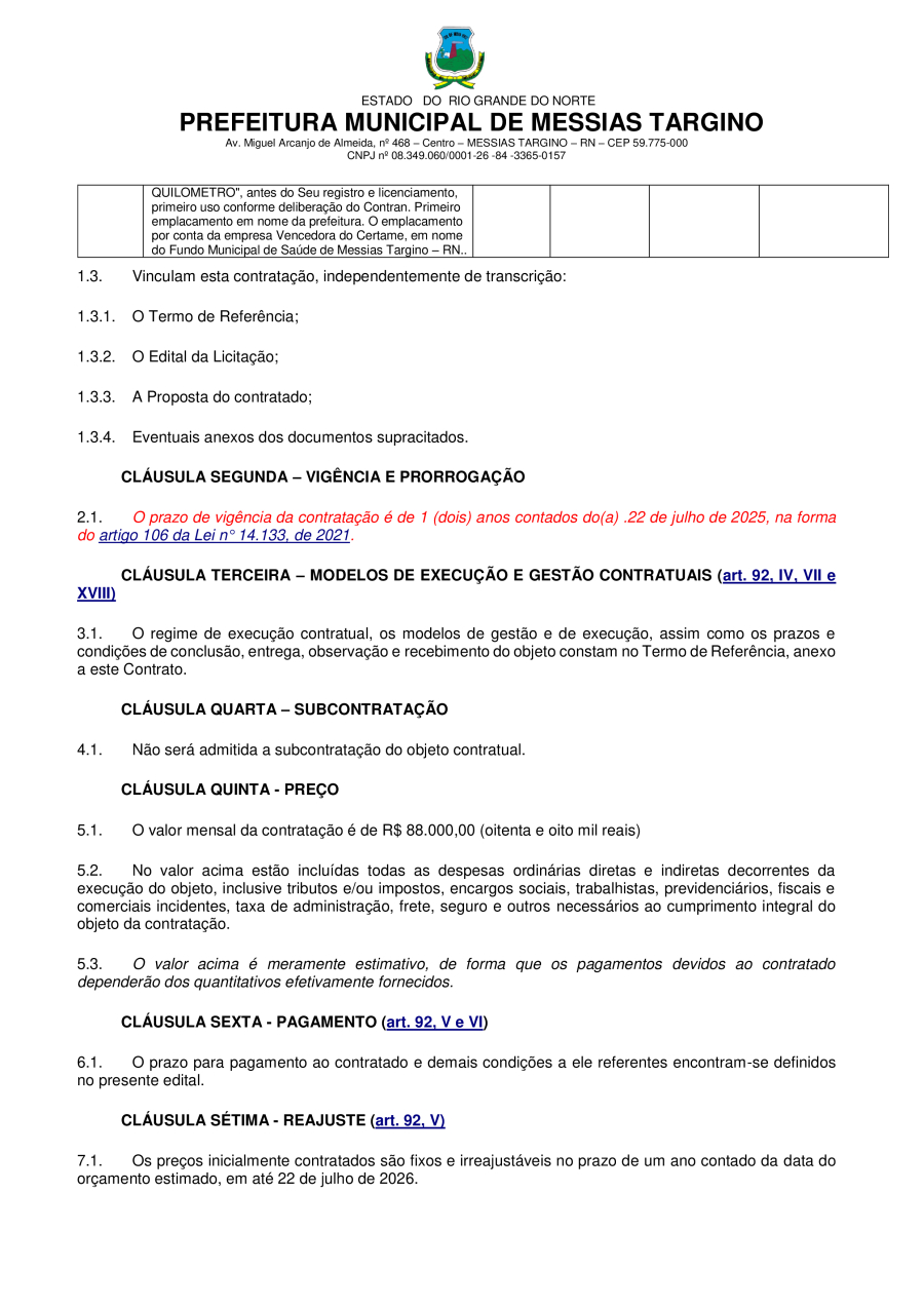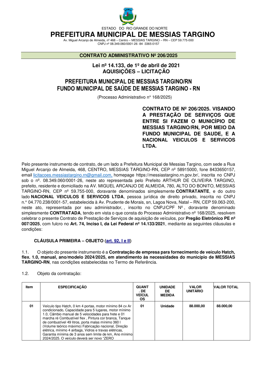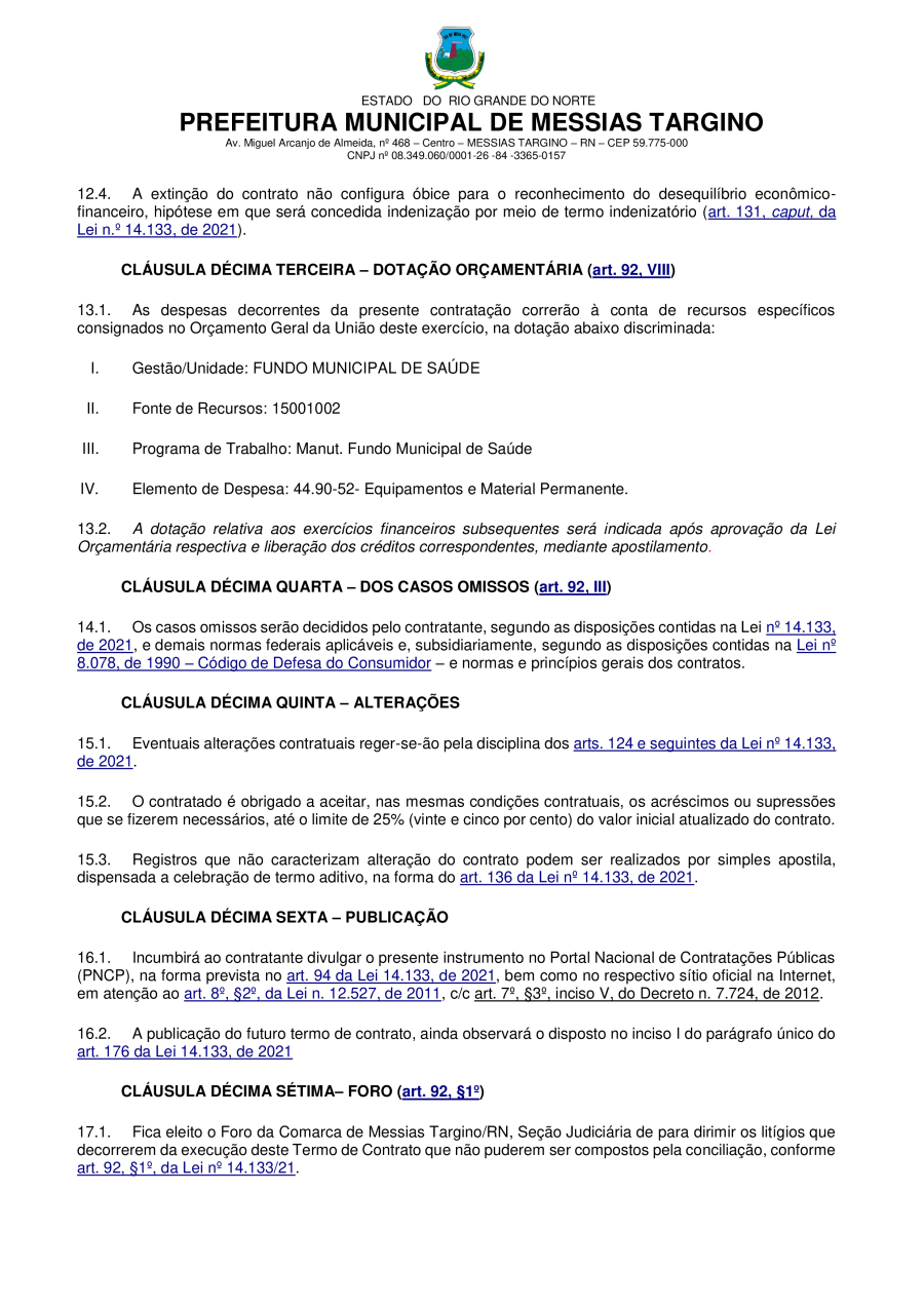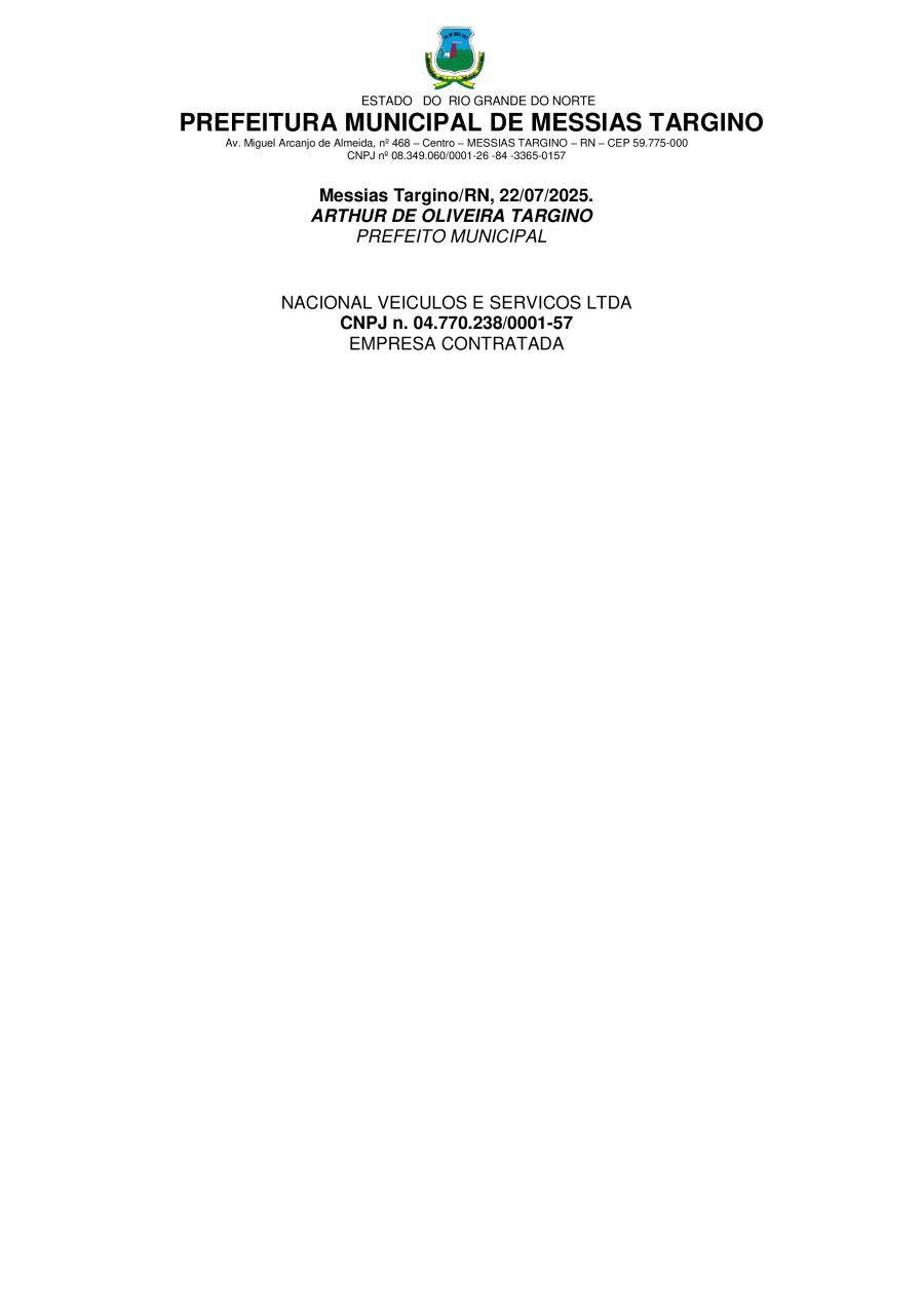 Conforme MP n° 2.200-2 de 24/08/2001, que institui a infraestrutura de chaves Públicas. Matéria Publicada no Diário Oficial do Município de Messias Targino/RN no dia - Edição 01336.