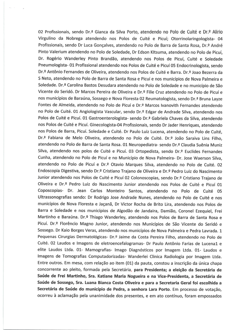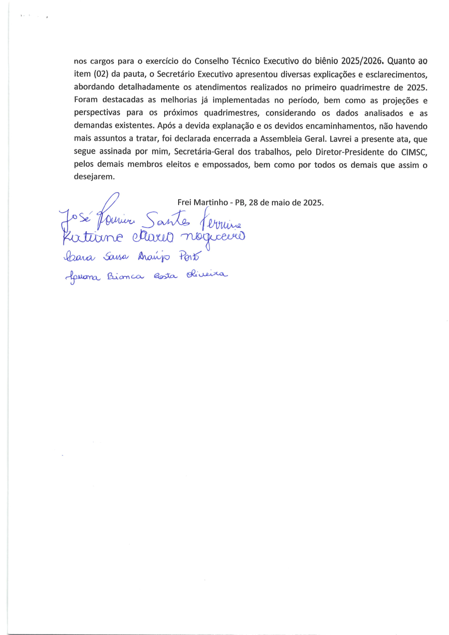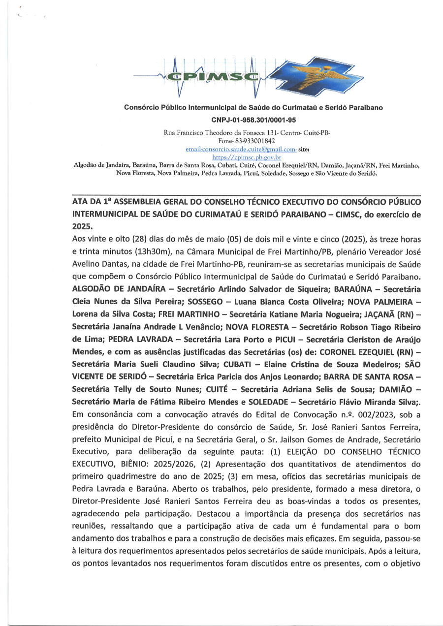 ATA DA 1ª ASSEMBLEIA GERAL DO CONSELHO TÉCNICO EXECUTIVO DO CONSÓRCIO PÚBLICO INTERMINICIPAL DE SAÚDE DO CURIMARAÚ E SERIDÓ PARAIBANO