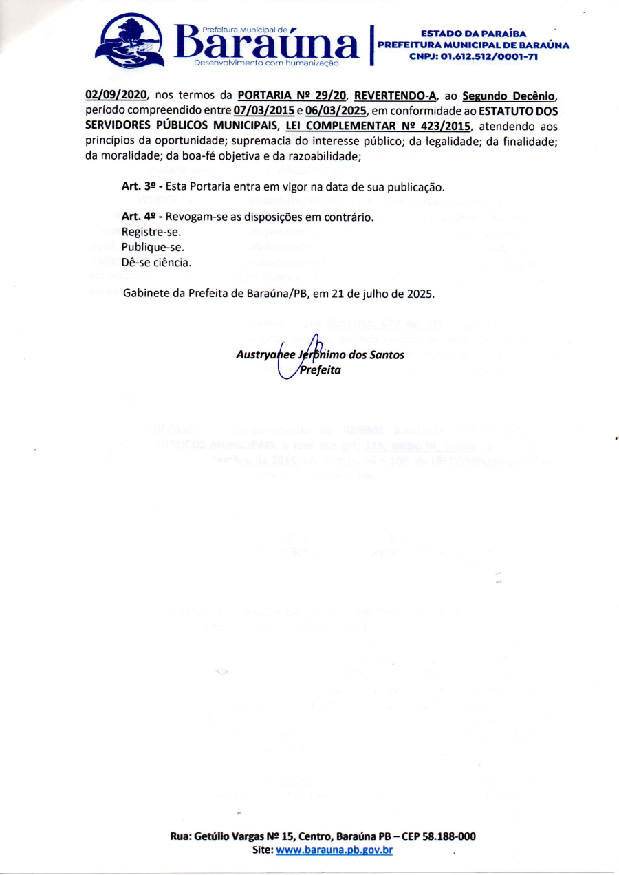 Conforme MP n° 2.200-2 de 24/08/2001, que institui a infraestrutura de chaves Públicas. Matéria Publicada no Diário Oficial do Município de Baraúna/PB no dia - Edição 01298.