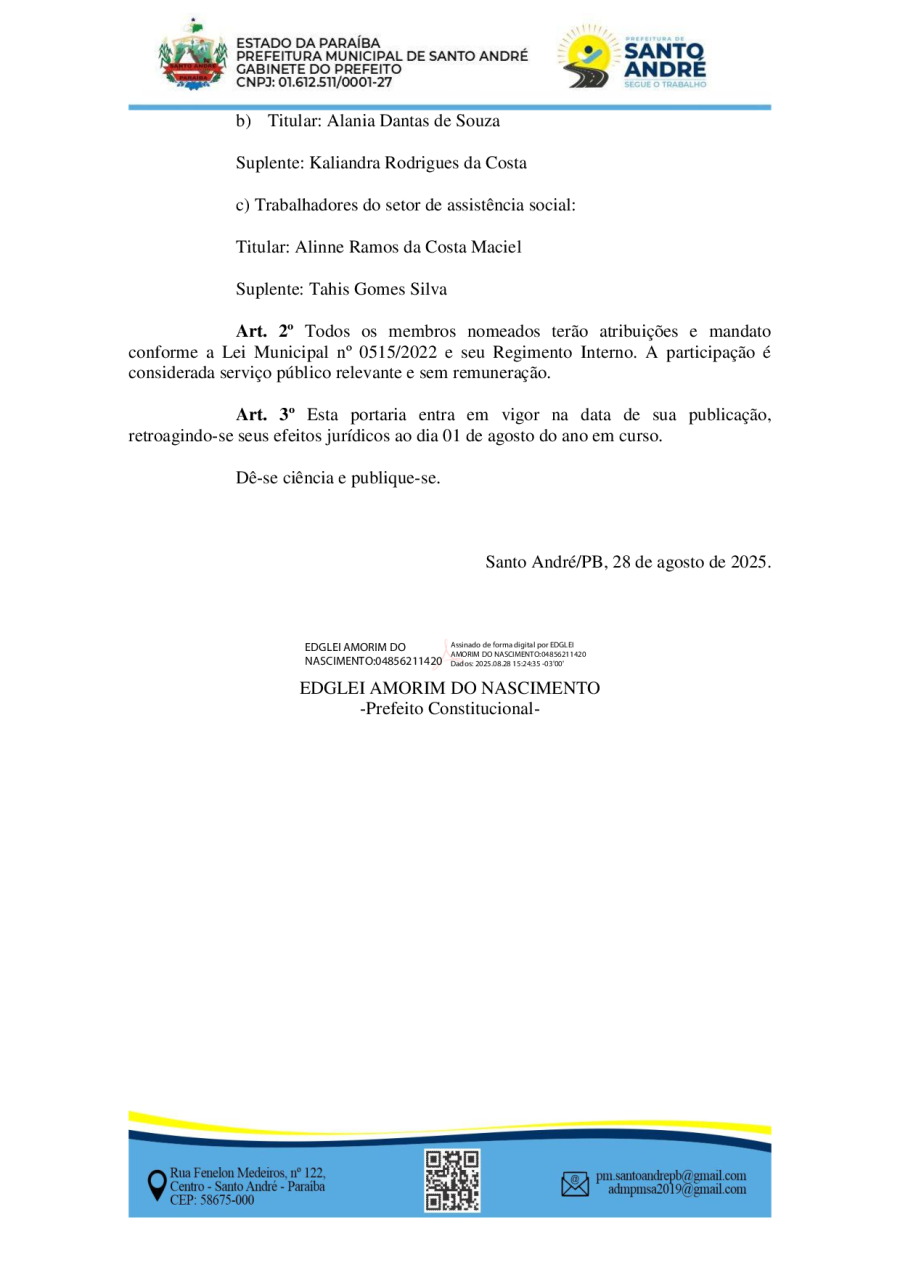 Conforme MP n° 2.200-2 de 24/08/2001, que institui a infraestrutura de chaves Públicas. Matéria Publicada no Diário Oficial do Município de Santo André/PB no dia - Edição 01287.