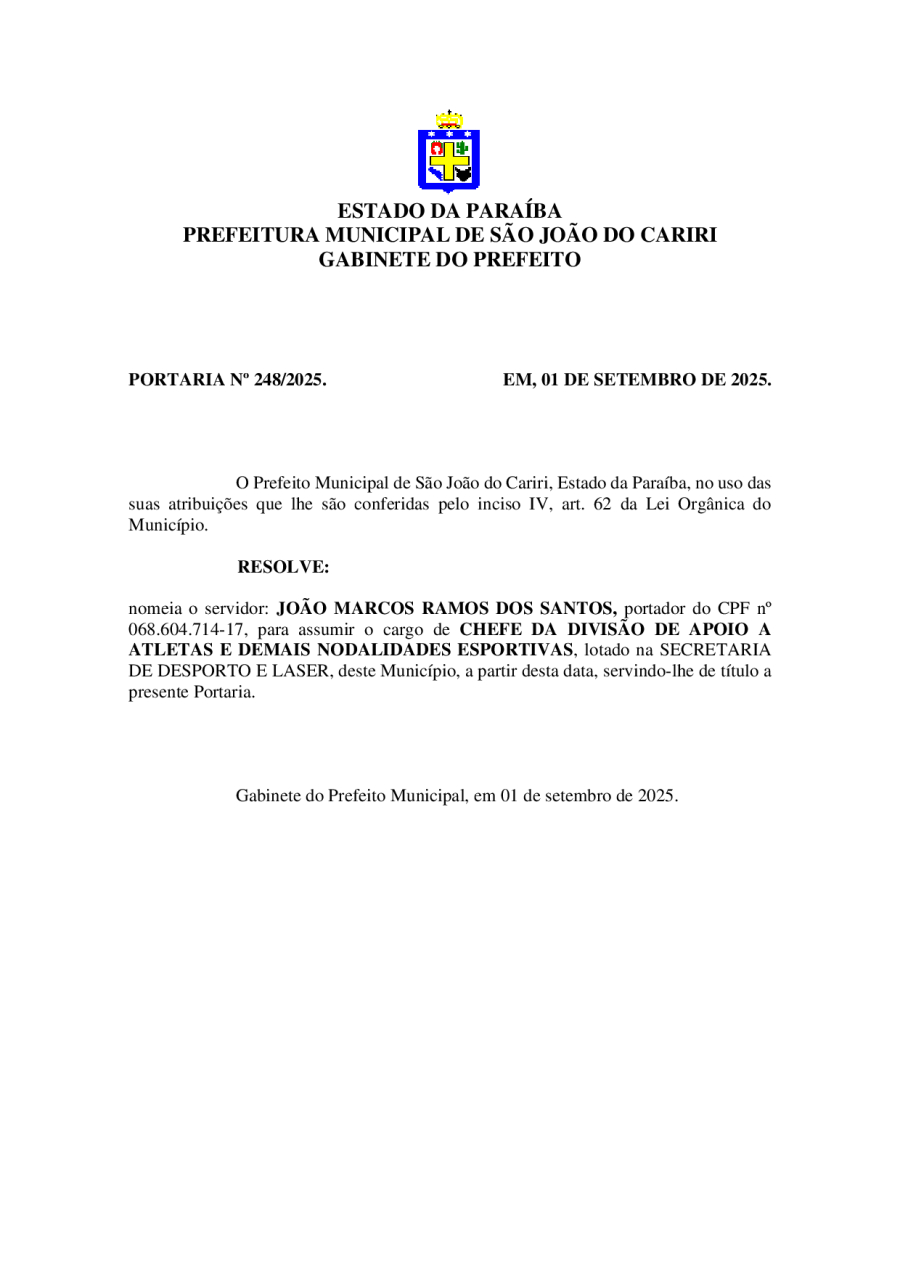PORTARIA 248/2025 - JOÃO MARCOS RAMOS DOS SANTOS