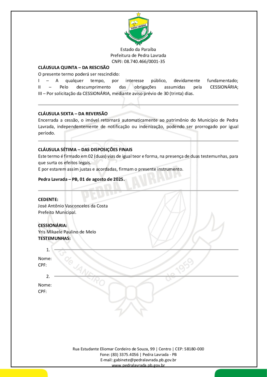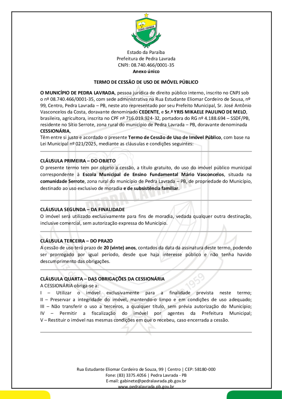Conforme MP n° 2.200-2 de 24/08/2001, que institui a infraestrutura de chaves Públicas. Matéria Publicada no Diário Oficial do Município de Pedra Lavrada/PB no dia - Edição 02237.