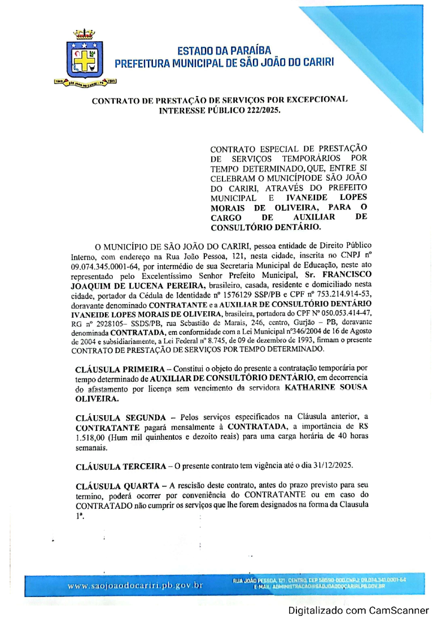 CONTRATO 222/2025 - IVANEIDE LOPES MORAIS DE OLIVEIRA
