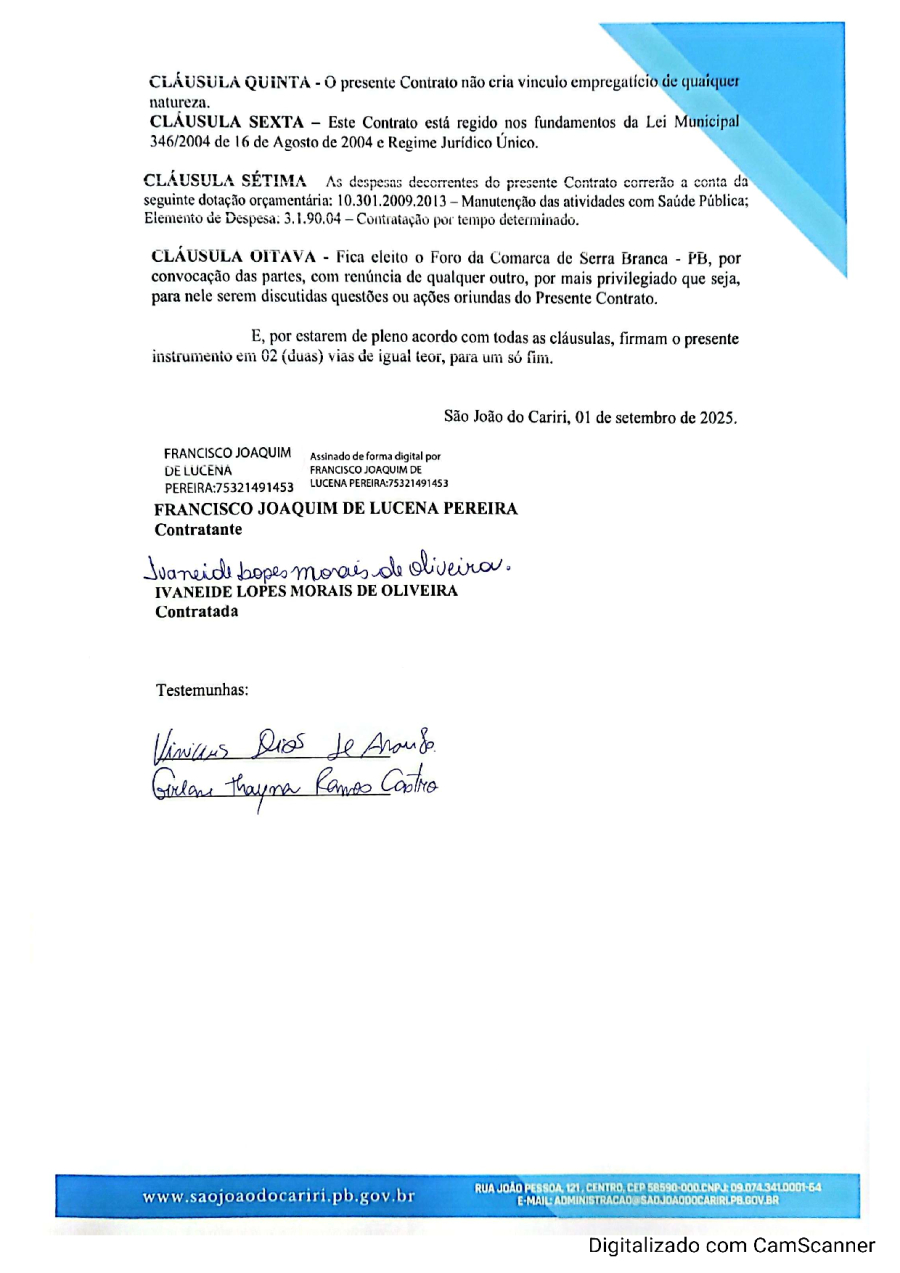 Conforme MP n° 2.200-2 de 24/08/2001, que institui a infraestrutura de chaves Públicas. Matéria Publicada no Diário Oficial do Município de São João do Cariri/PB no dia - Edição 01807.