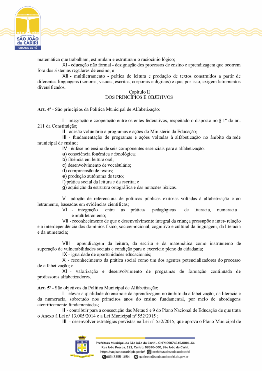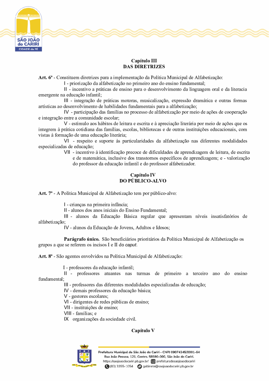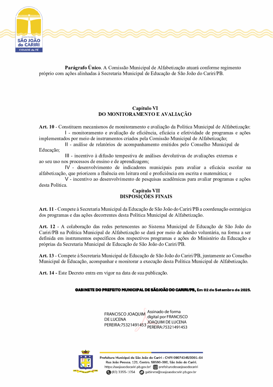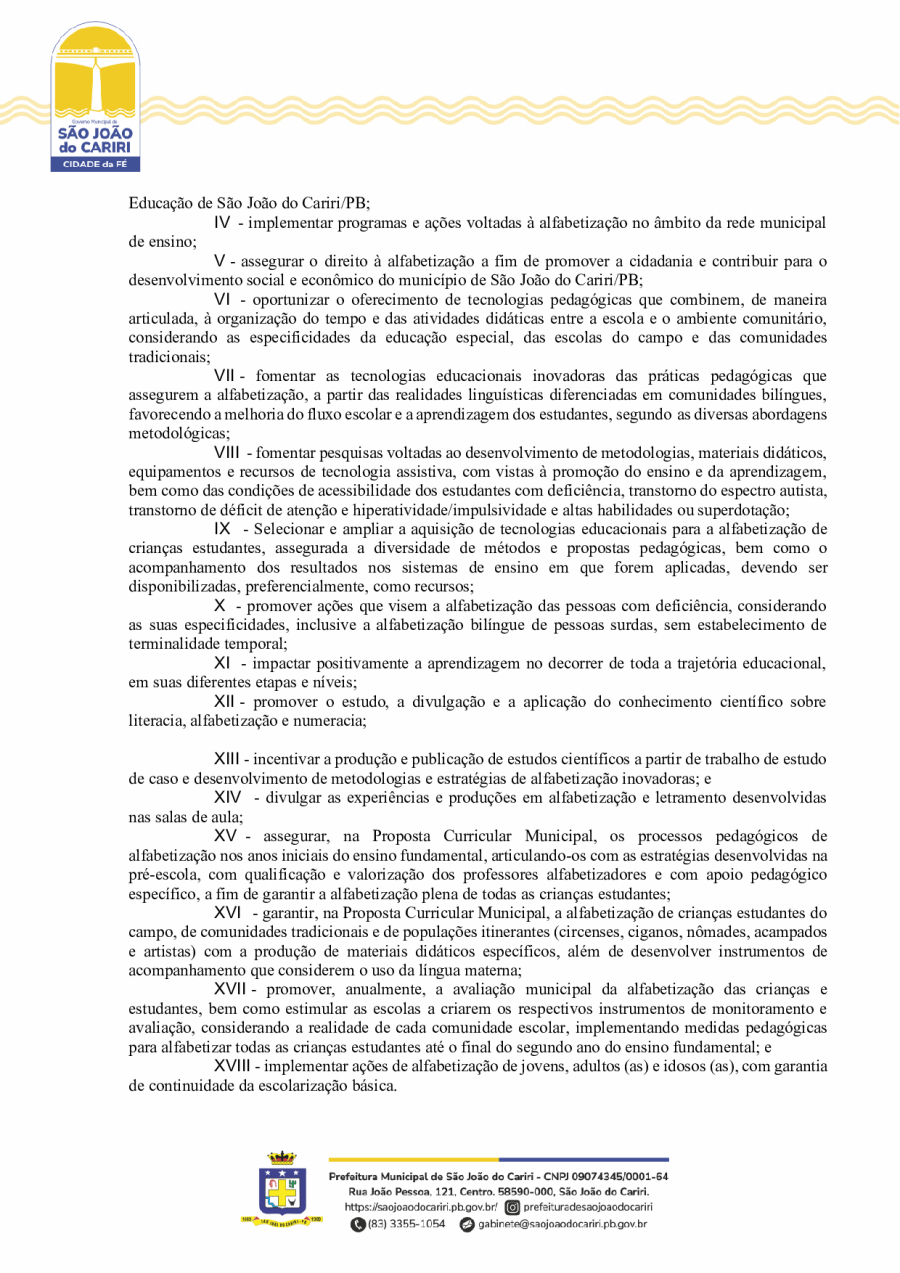 DECRETO Nº20/ - INSTITUI A POLÍTICA MUNICIPAL DE ALFABETIZAÇÃO DO MUNICÍPIO DE SÃO JOÃO DO CARIRI/PB, E DÁ OUTRAS PROVIDÊNCIAS.