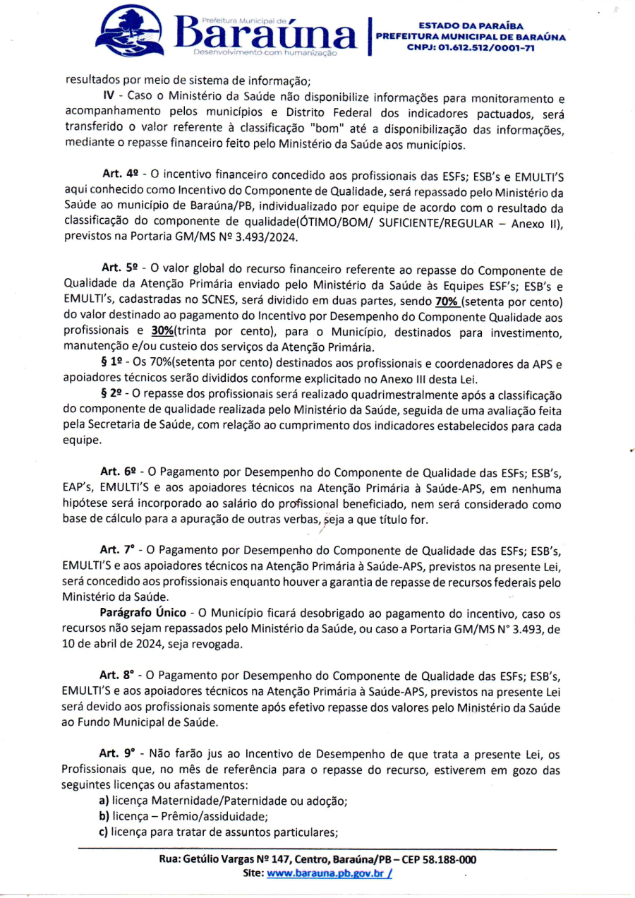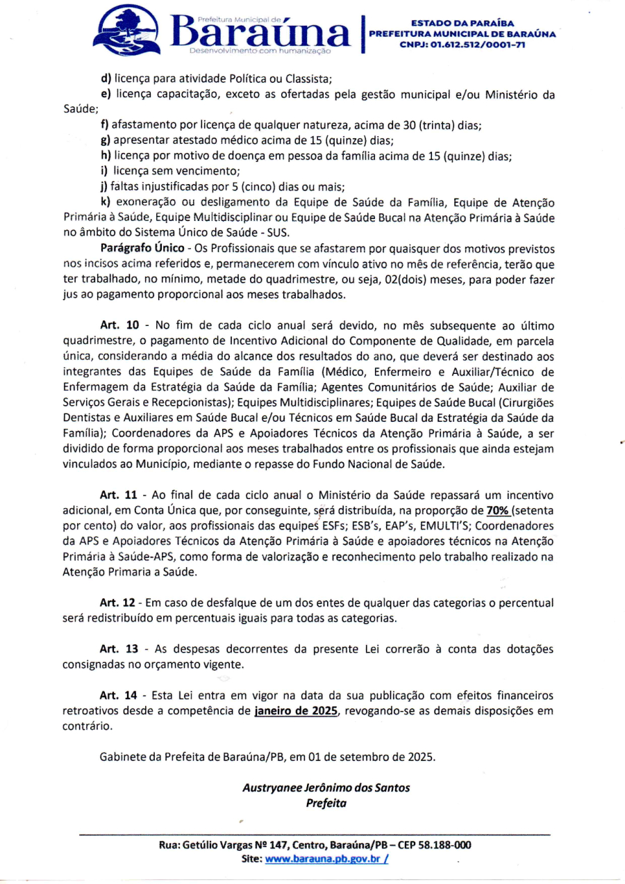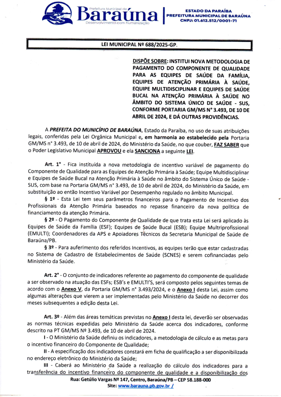 LAI MUNICIPAPL Nº 688/2025-GP - DISPÕE SOBRE: INSTITUI NOVA METODOLOGIA DE PAGAMENTO DO COMPONENTE DE QUALIDADE PARA AS RQUIPES DE SAÚDE DA FAMILIA, EQUIPES DE ATENÇÃO PRIMÁRIA Á SAÚDE, EQUIPE MULTIDISCIPLINAR E EQUIPES DE SAÚDE BUCAL NA ATENÇÃO PREIMÁRIA Á SAÚDE NO ÂMBITO DO SISTEMA ÚNICO DE SAÚDE - SUS, CONFORME PORTARIA GM/MS Nº 3.493, DE 10 DE ABRIL DE 2024, E DA OUTRAS PROVIDÊNCIAS. - 02 DE SETEMBRO DE 2025.