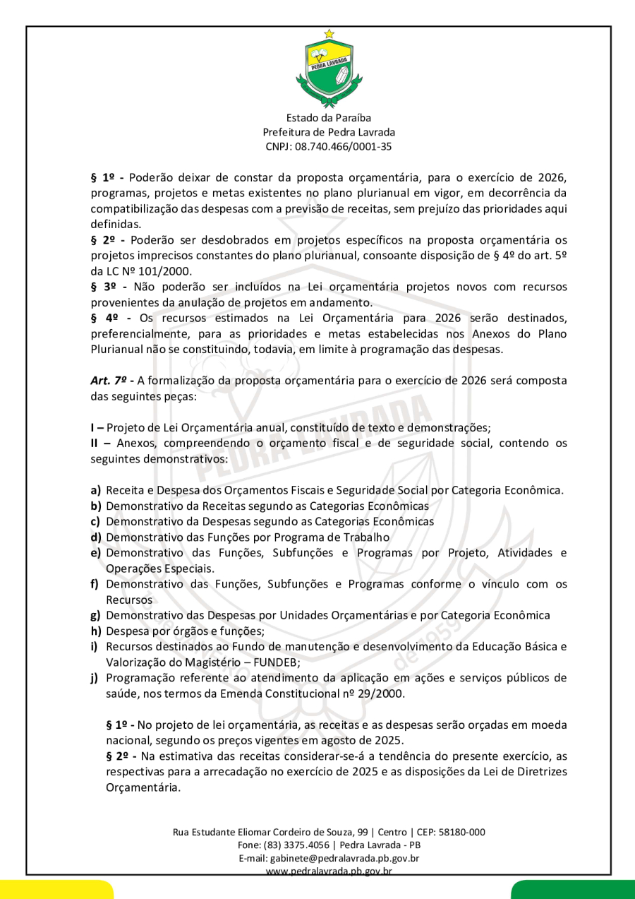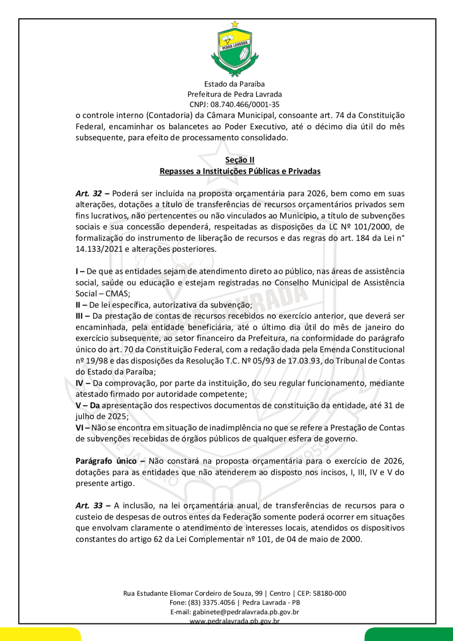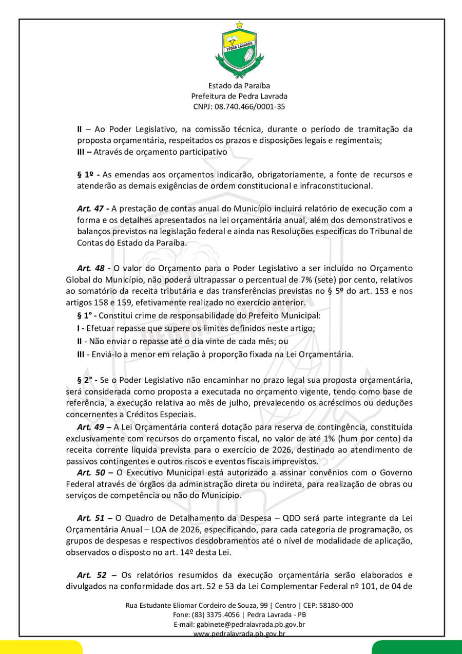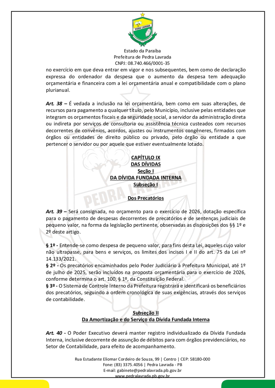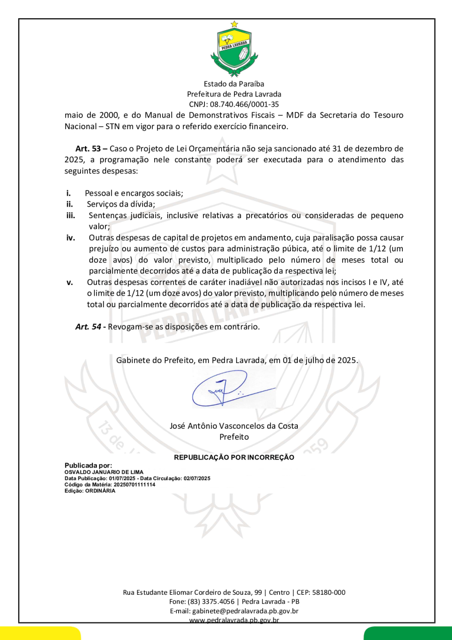 Conforme MP n° 2.200-2 de 24/08/2001, que institui a infraestrutura de chaves Públicas. Matéria Publicada no Diário Oficial do Município de Pedra Lavrada/PB no dia - Edição 02240.
