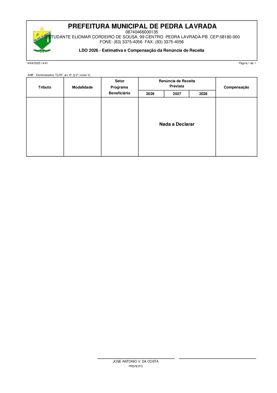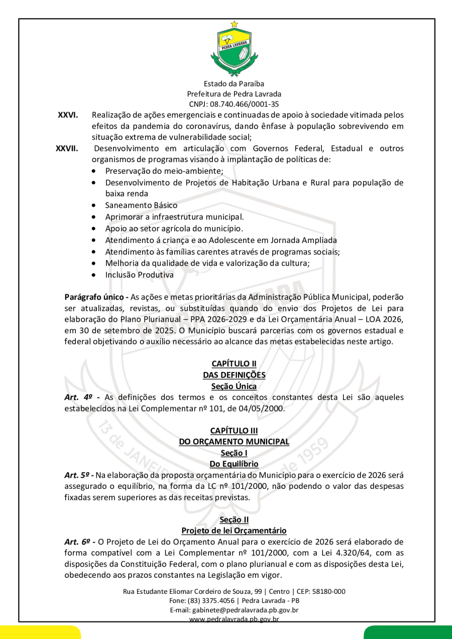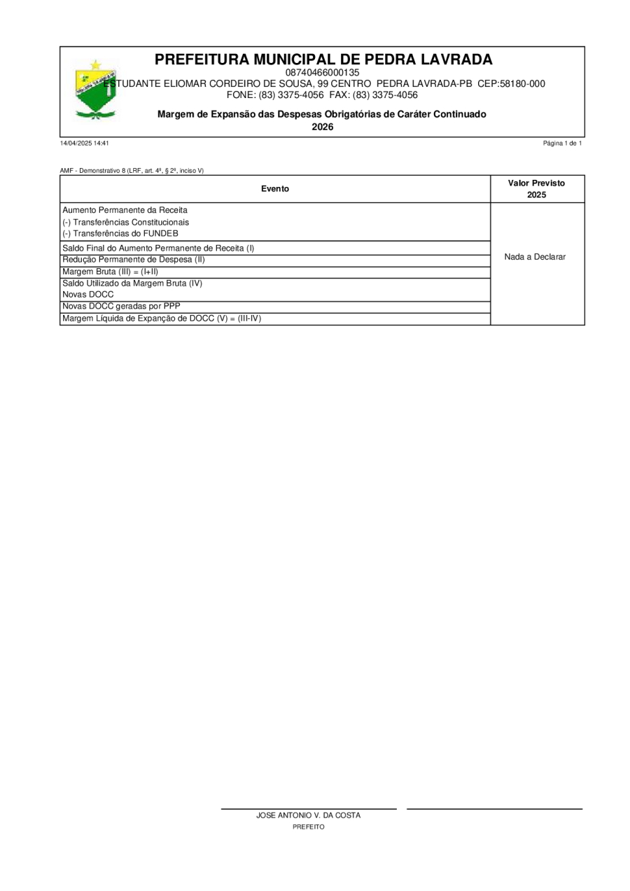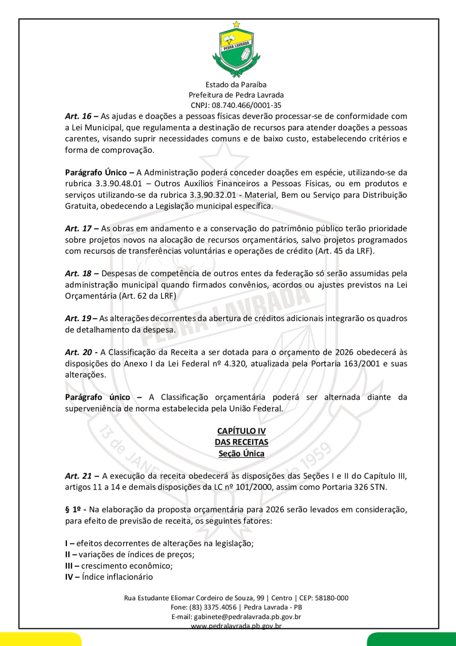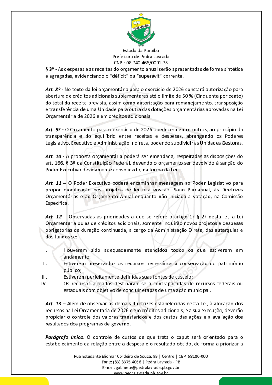 Conforme MP n° 2.200-2 de 24/08/2001, que institui a infraestrutura de chaves Públicas. Matéria Publicada no Diário Oficial do Município de Pedra Lavrada/PB no dia - Edição 02240.