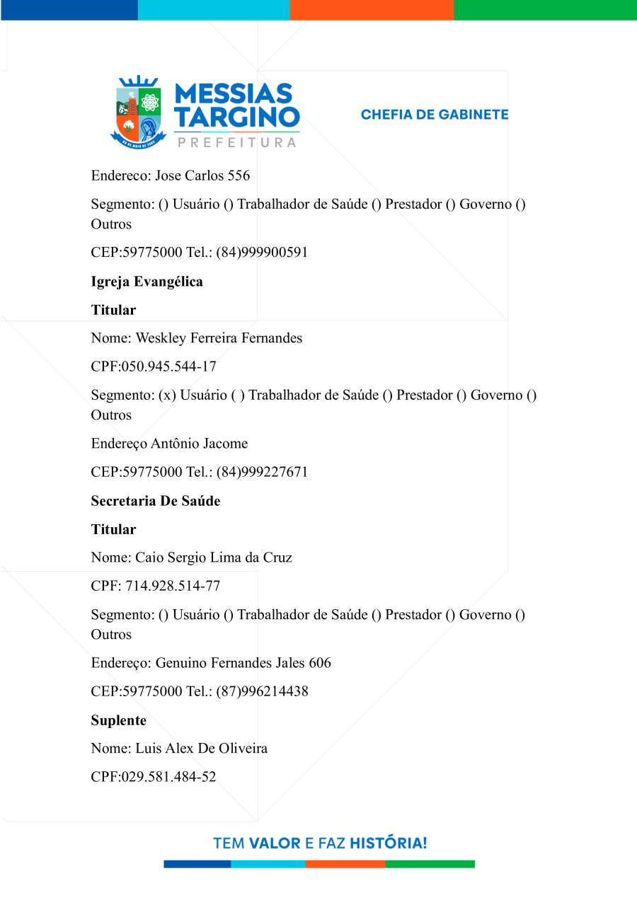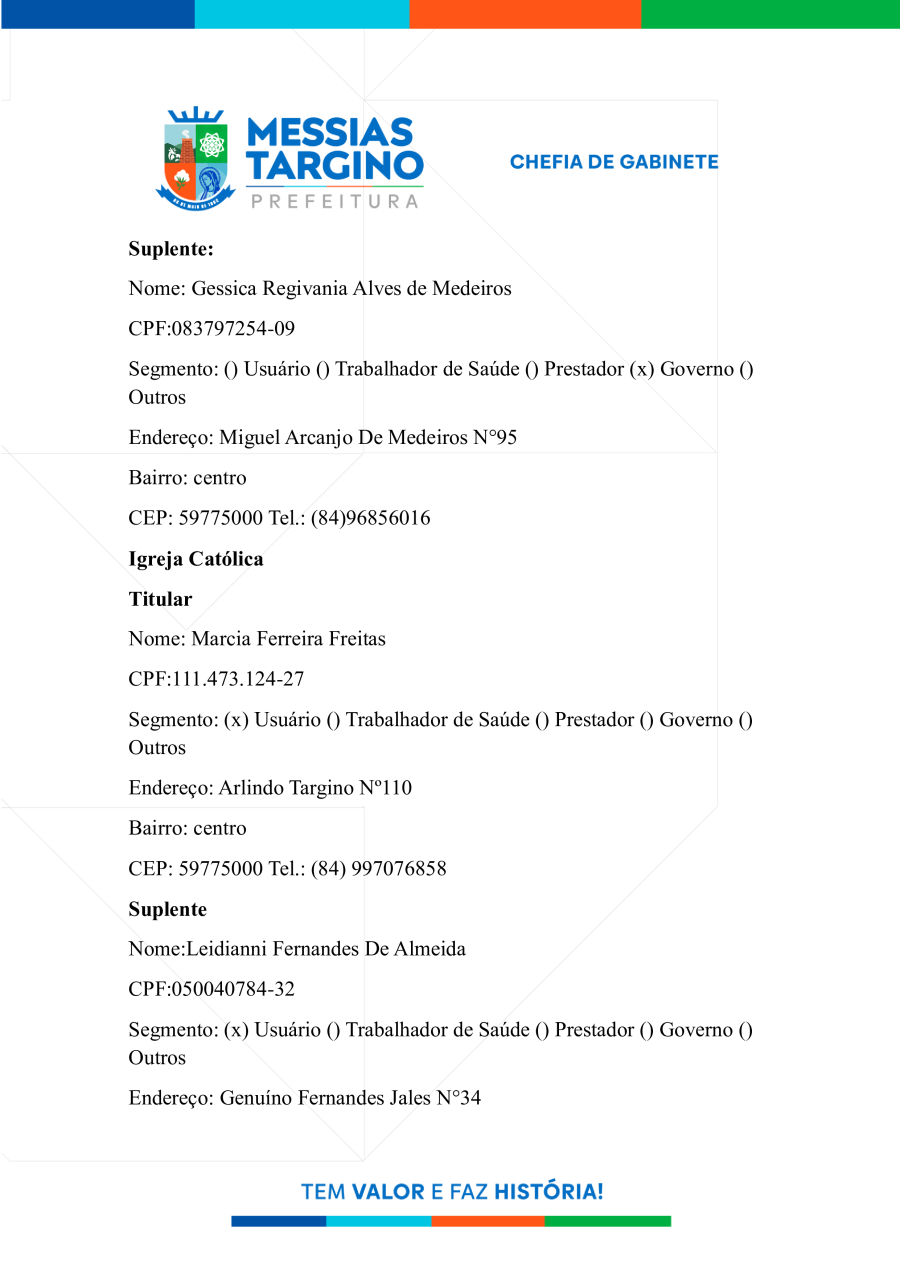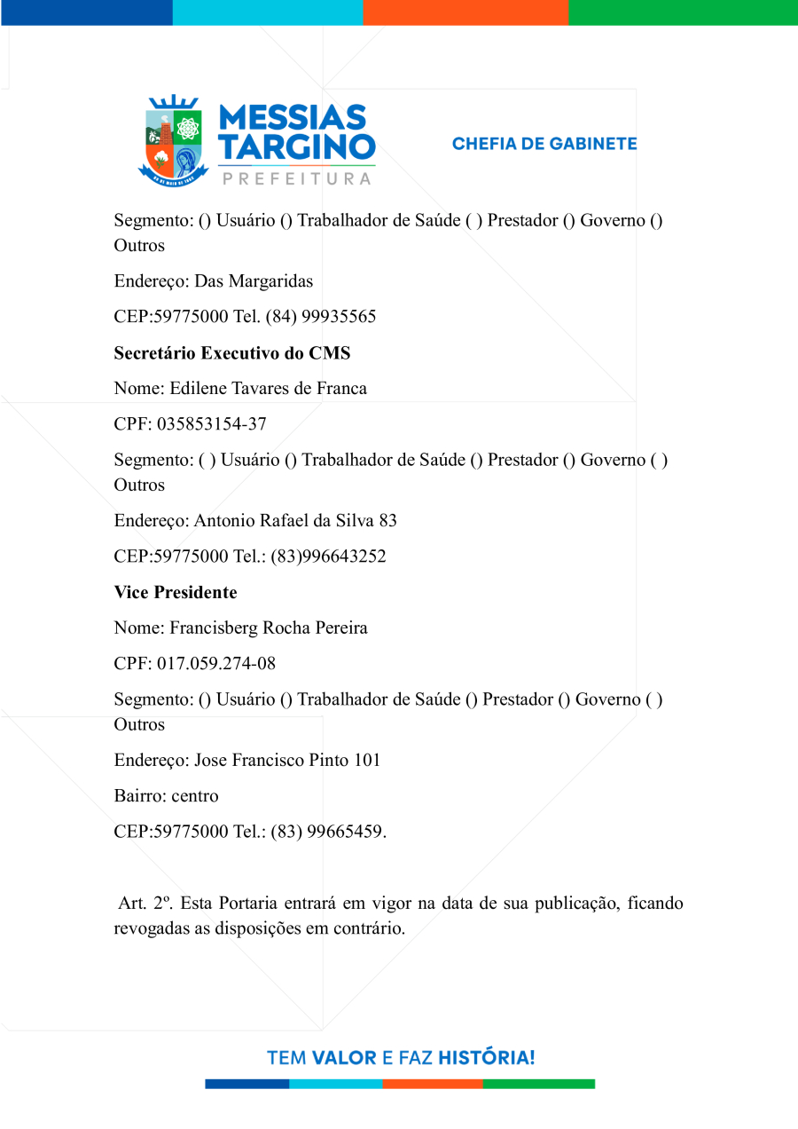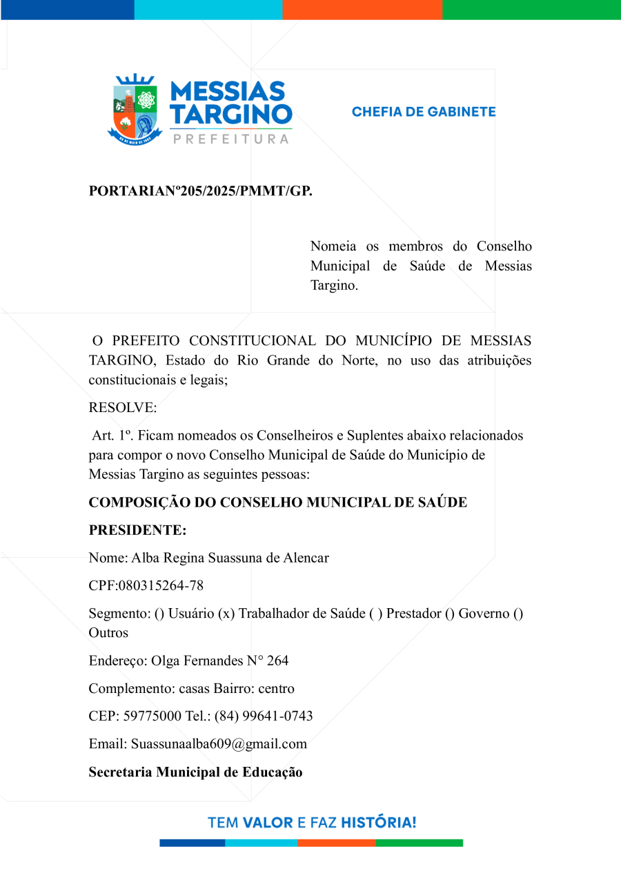 PORTARIA Nº205 - NOMEIA MEMBROS DO CONSELHO MUNICIPAL DE SAÚDE DE MESSIAS TARGINo