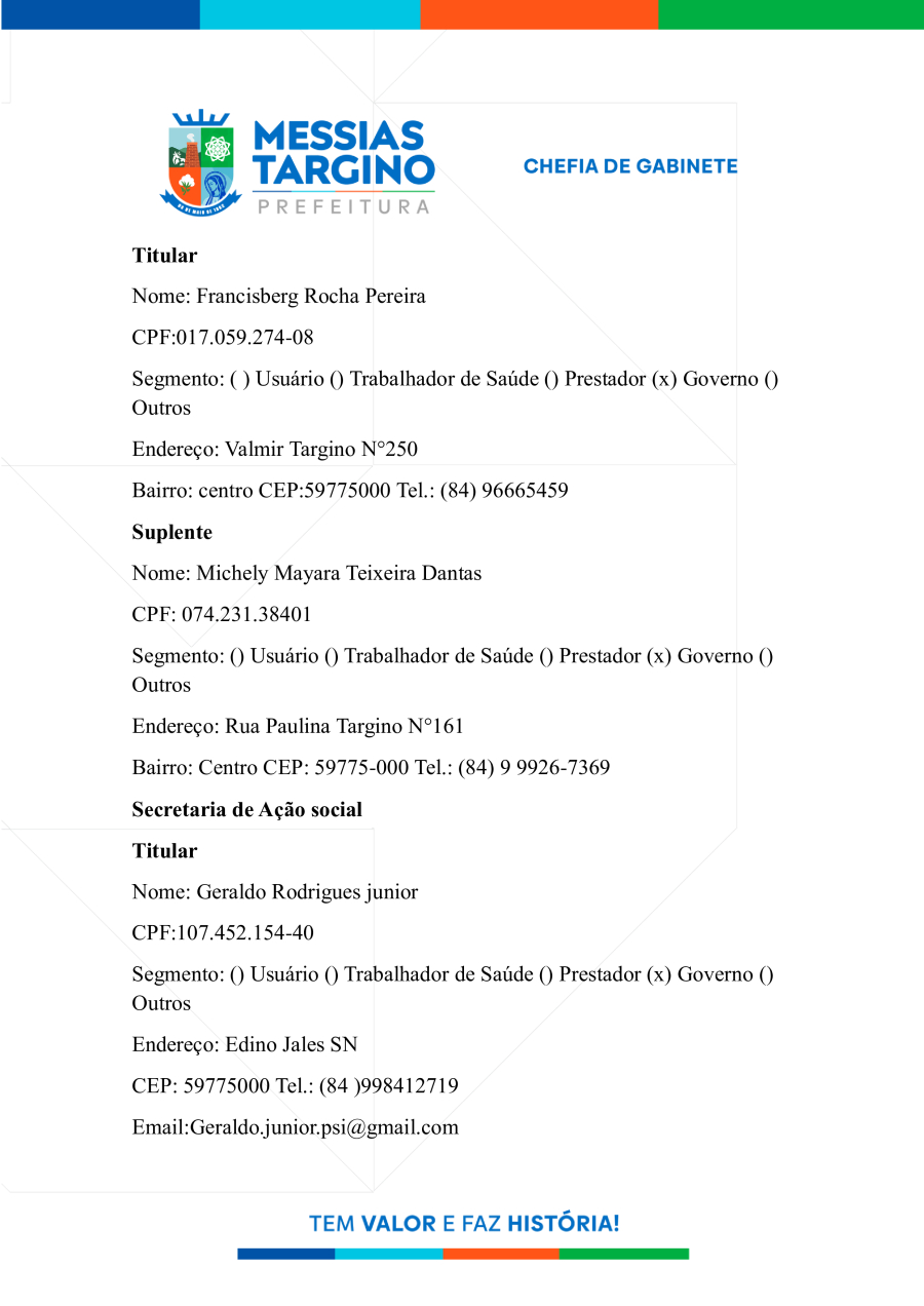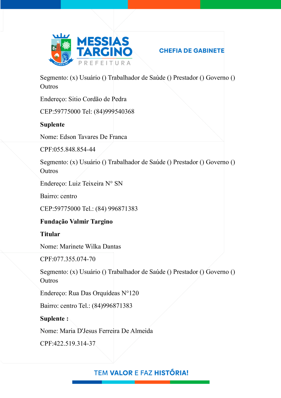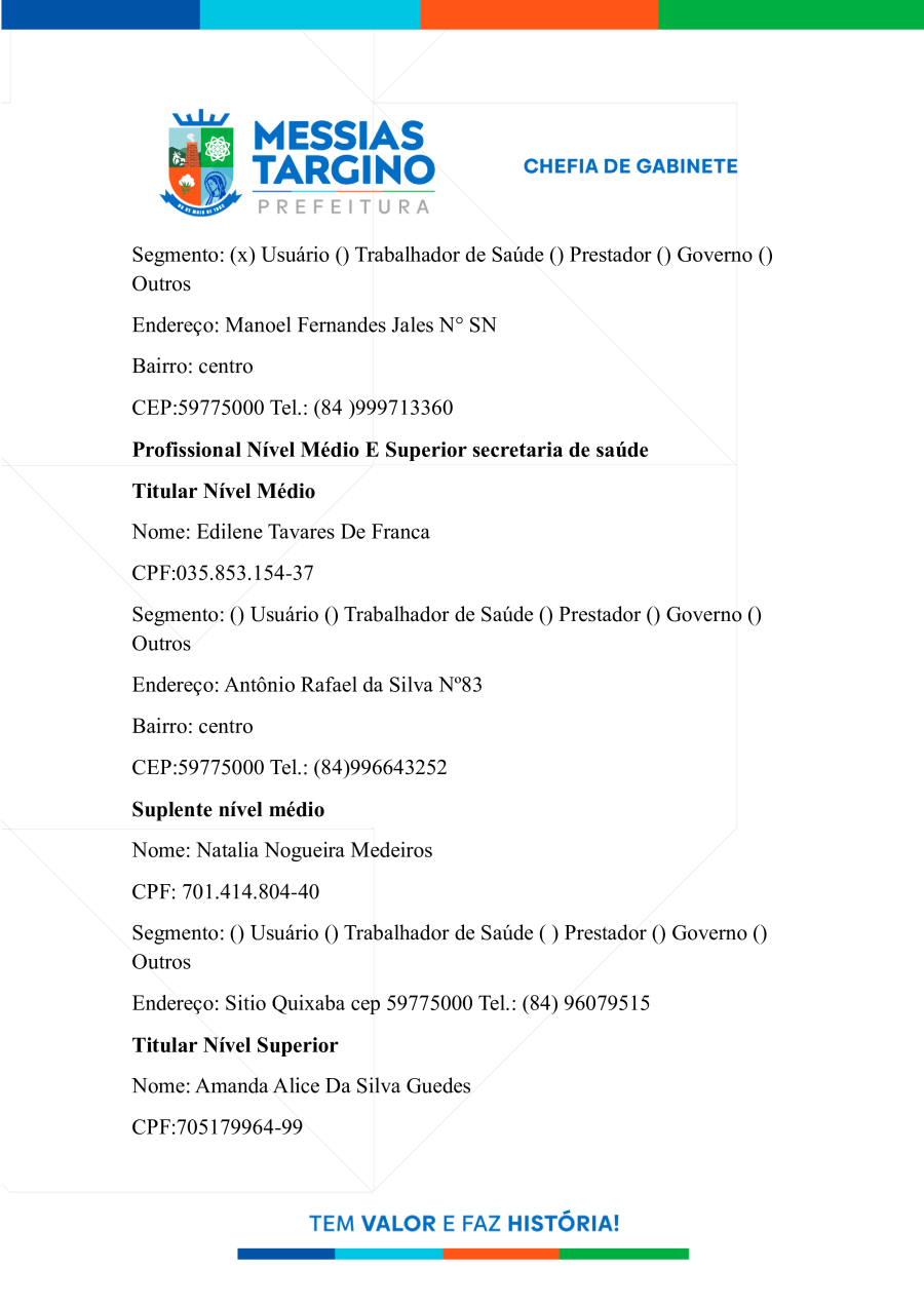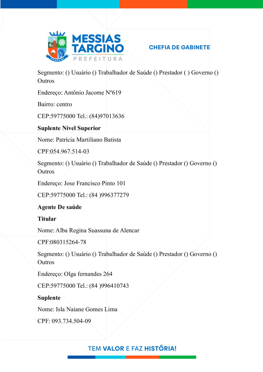 PORTARIA Nº205 - NOMEIA MEMBROS DO CONSELHO MUNICIPAL DE SAÚDE DE MESSIAS TARGINo