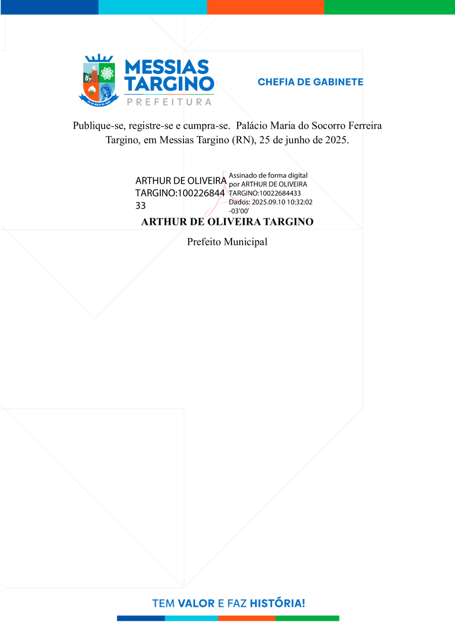 Conforme MP n° 2.200-2 de 24/08/2001, que institui a infraestrutura de chaves Públicas. Matéria Publicada no Diário Oficial do Município de Messias Targino/RN no dia - Edição 01315.