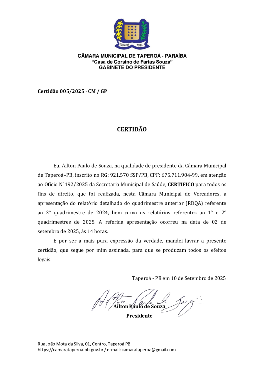 CERTIDÃO N° 0005/2025