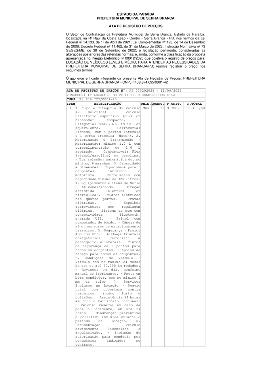 ATA REGISTRO DE PREÇO