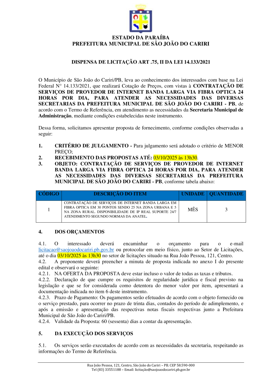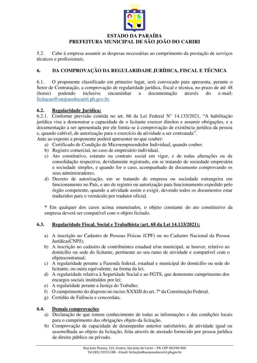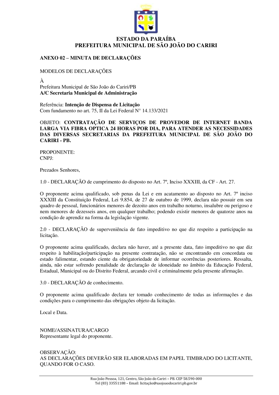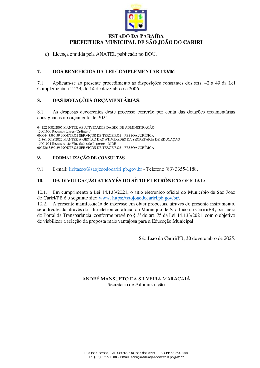 Conforme MP n° 2.200-2 de 24/08/2001, que institui a infraestrutura de chaves Públicas. Matéria Publicada no Diário Oficial do Município de São João do Cariri/PB no dia - Edição 01828.