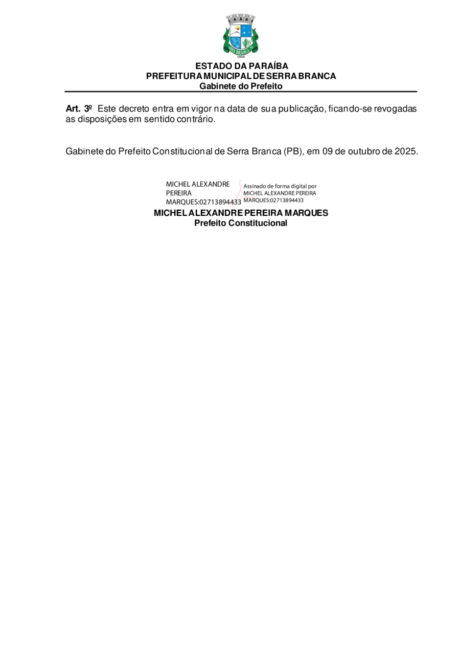 Conforme MP n° 2.200-2 de 24/08/2001, que institui a infraestrutura de chaves Públicas. Matéria Publicada no Diário Oficial do Município de Serra Branca/PB no dia - Edição 00194.