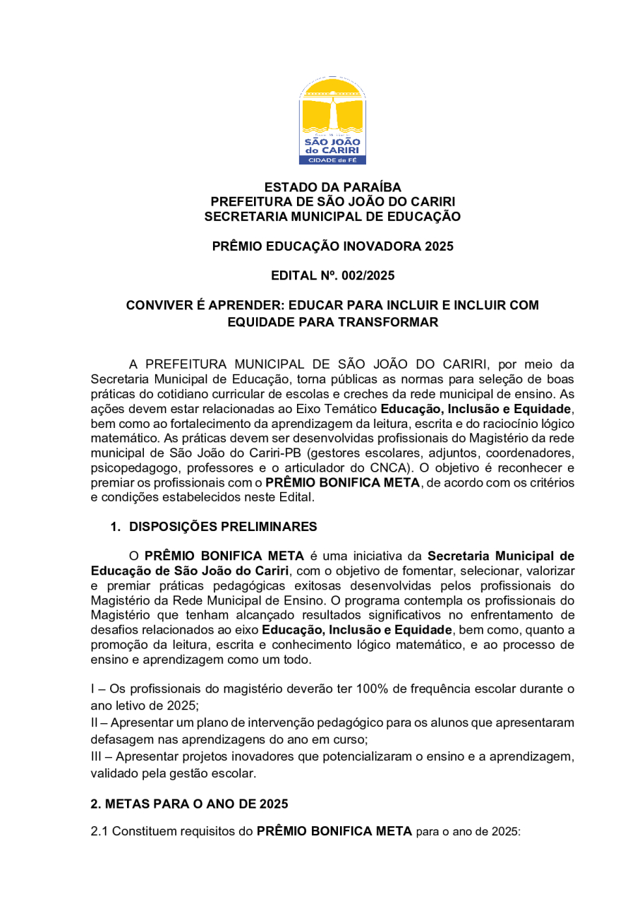 EDITAL 02/2025 - PRÊMIO EDUCAÇÃO INOVADORA 2025