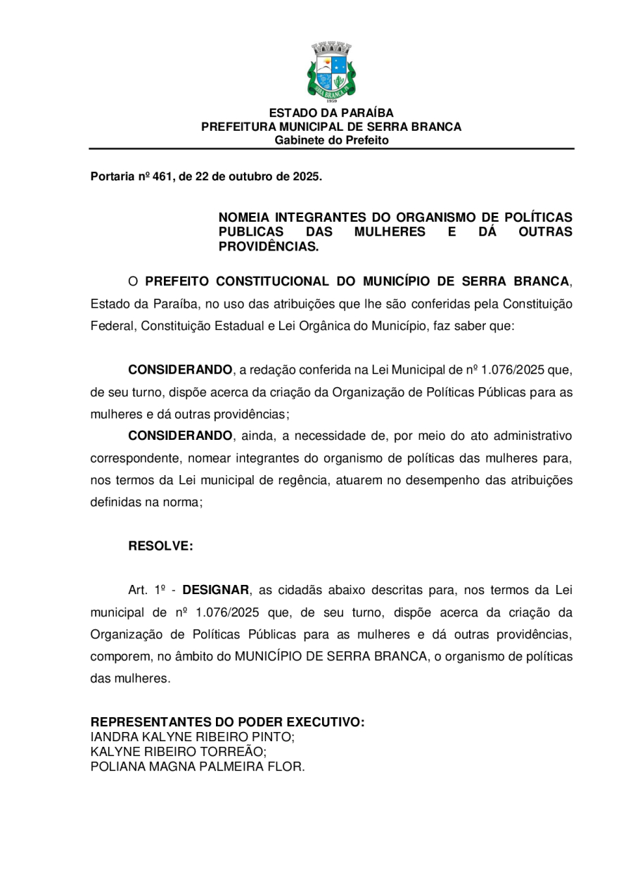 PORTARIA Nº 461, DE 22 DE OUTUBRO DE 2025.