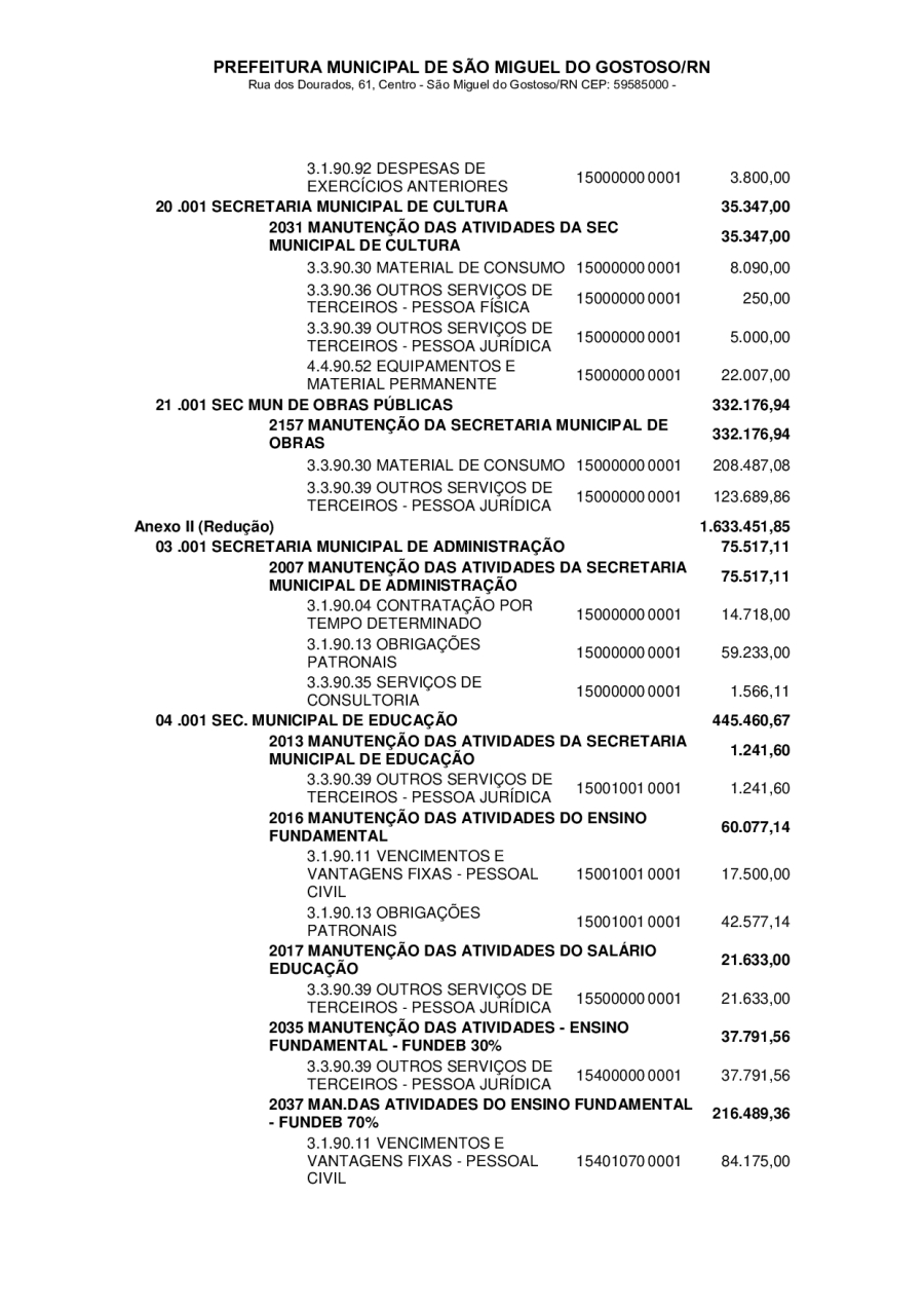 RETIFICAÇÃO - DECRETO ANULAÇÃO DE DOTAÇÃO 357