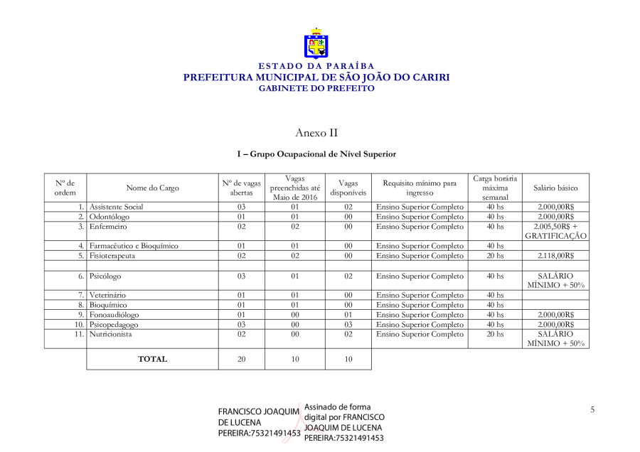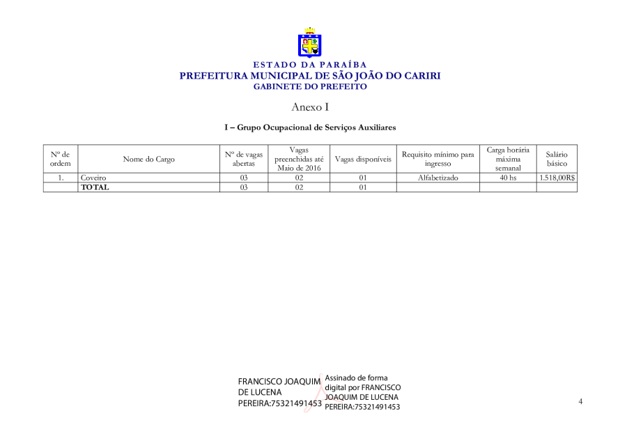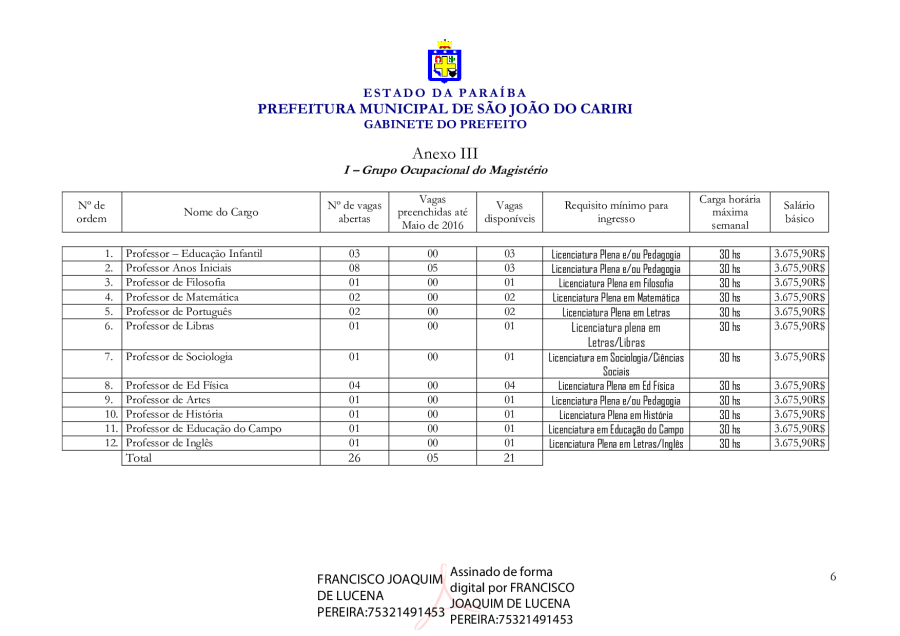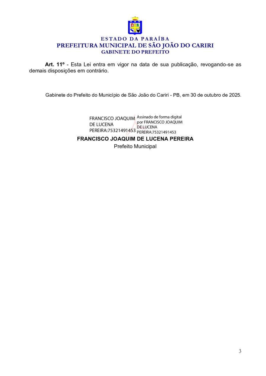 Conforme MP n° 2.200-2 de 24/08/2001, que institui a infraestrutura de chaves Públicas. Matéria Publicada no Diário Oficial do Município de São João do Cariri/PB no dia - Edição 01849.