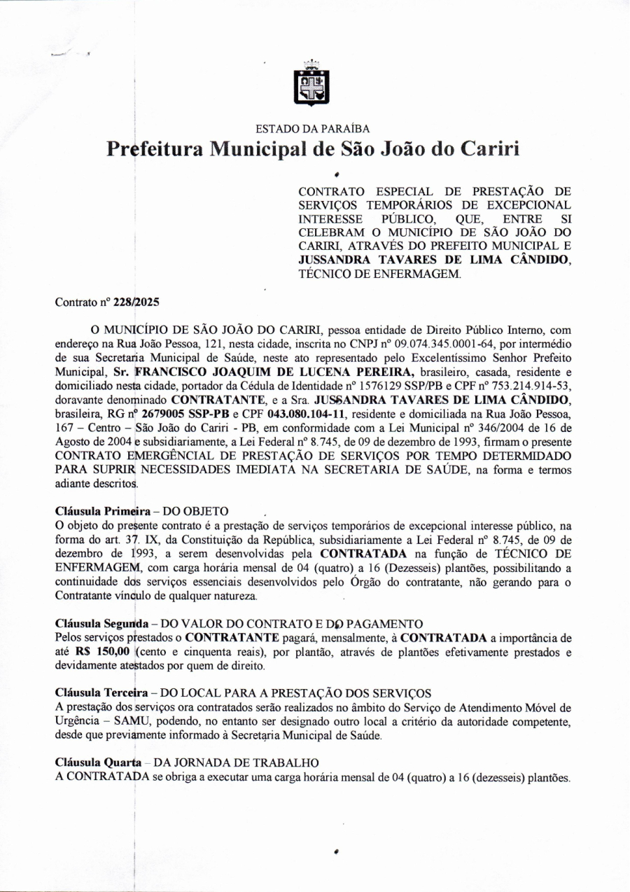 CONTRATO 228/2025 - JUSSANDRA TAVARES DE LIMA CANDIDO