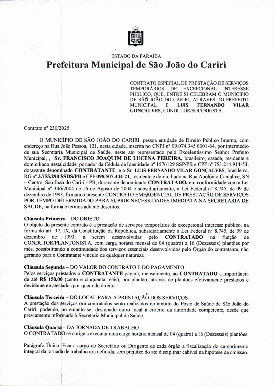 CONTRATO 230/2025 - LUIS FERNANDO VILAR GONÇALVES
