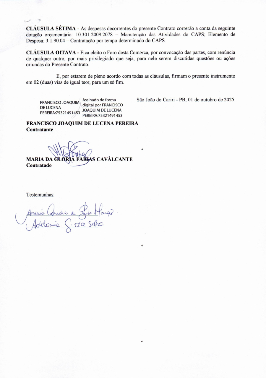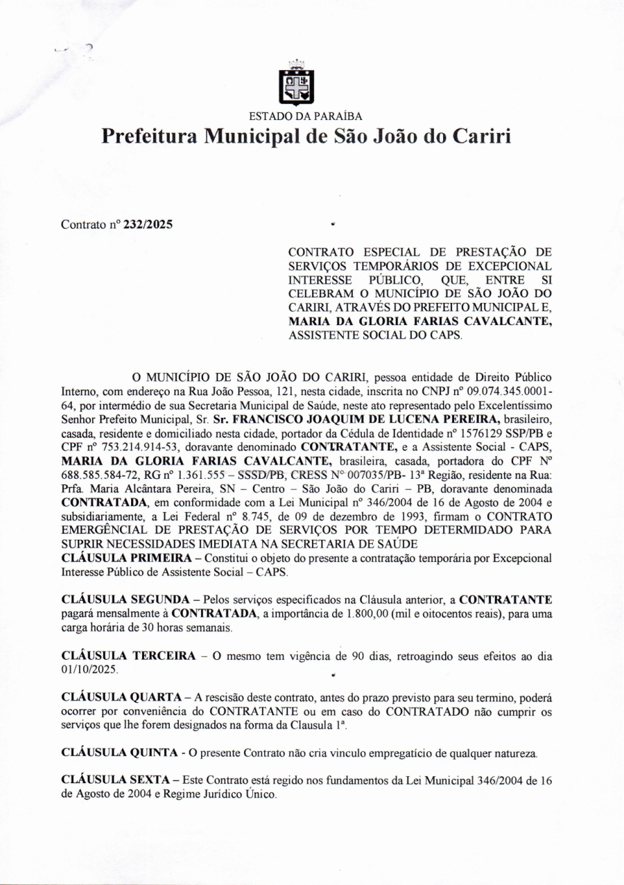 CONTRATO 232/2025 - MARIA DA GLORIA FARIAS CAVALCANTE