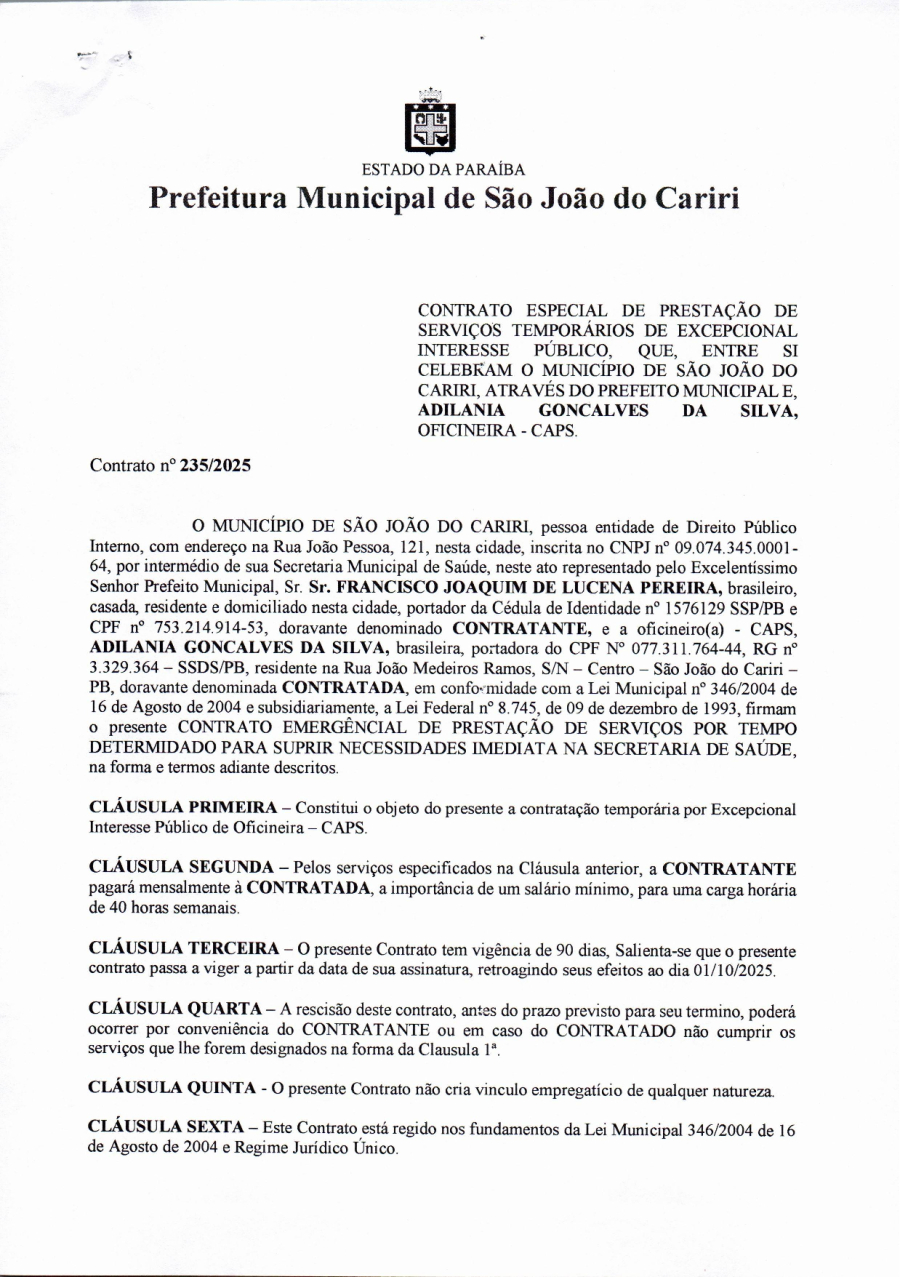 CONTRATO 235/2025 - ADILANIA GONÇALVES DA SILVA